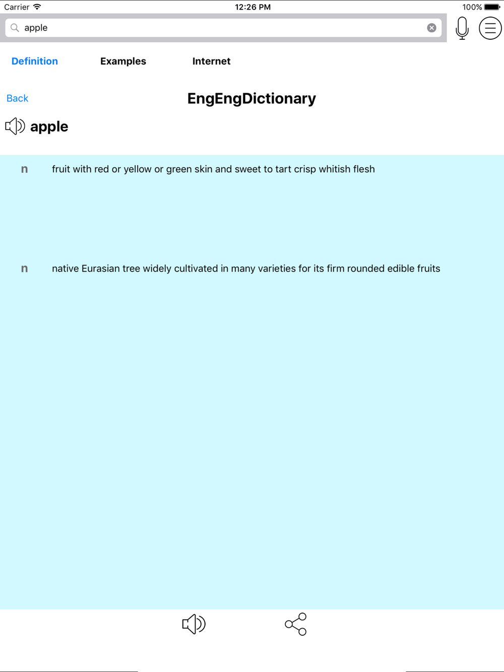 The application allows you to search and browse words and phrases in a huge and complete thesaurus. Other than basic dictionary function, English English dictionary also offers extra possibilities: audio pronunciations, example sentences, and more for your daily usage.