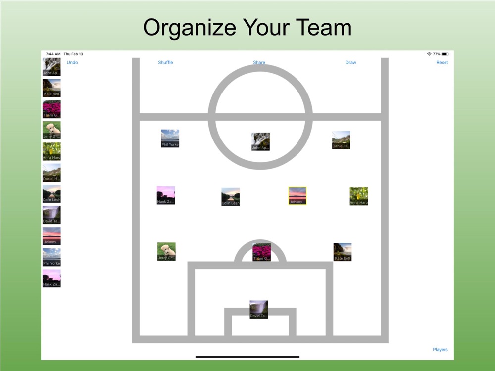 - Select a player to set position.
