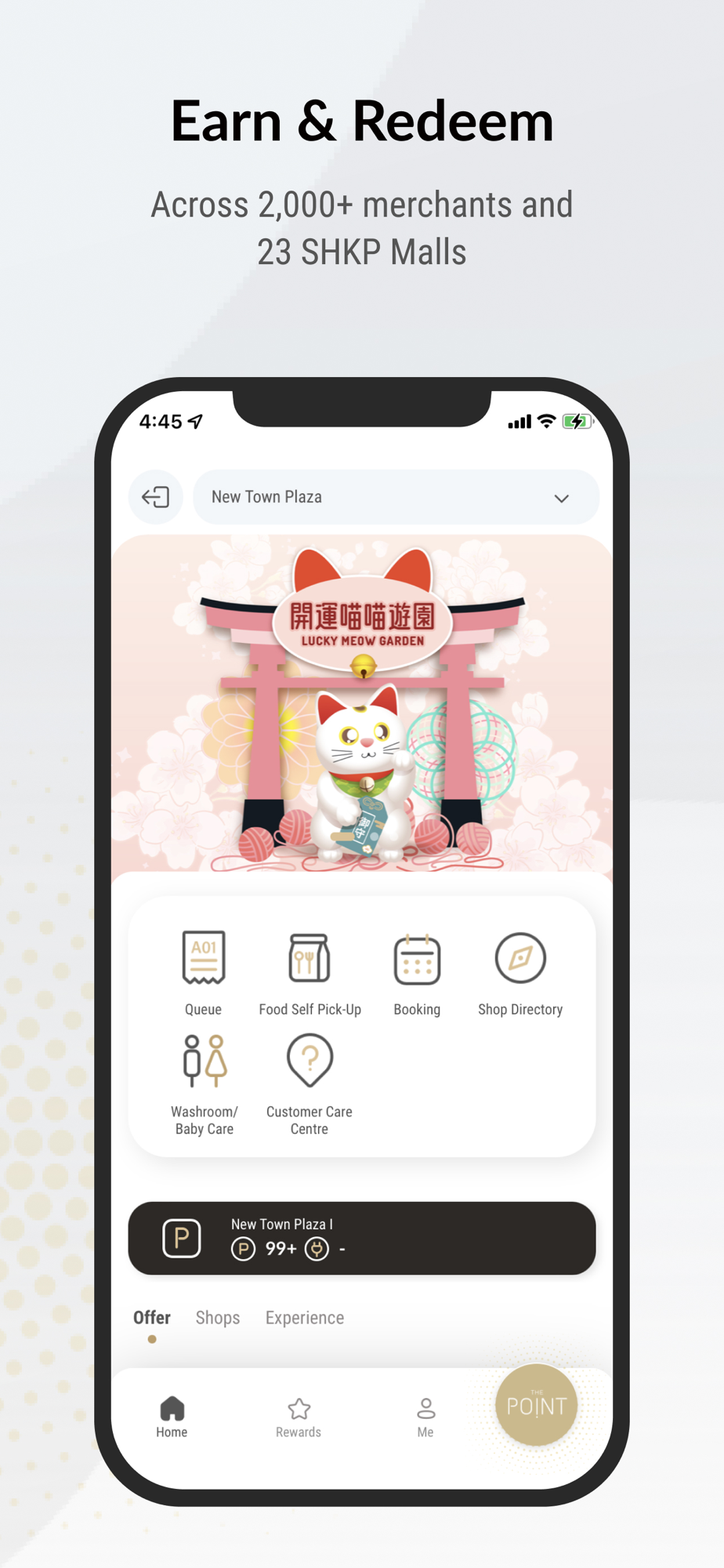 The Point, an integrated loyalty program covering 25 SHKP malls, has officially debuted. Members can earn points for any spending at participating malls and redeem a variety of gifts and offers. Download the latest SHKP Malls mobile app to register as a member of The Point. The mobile app enables members to register points and redeem rewards on a single platform.
