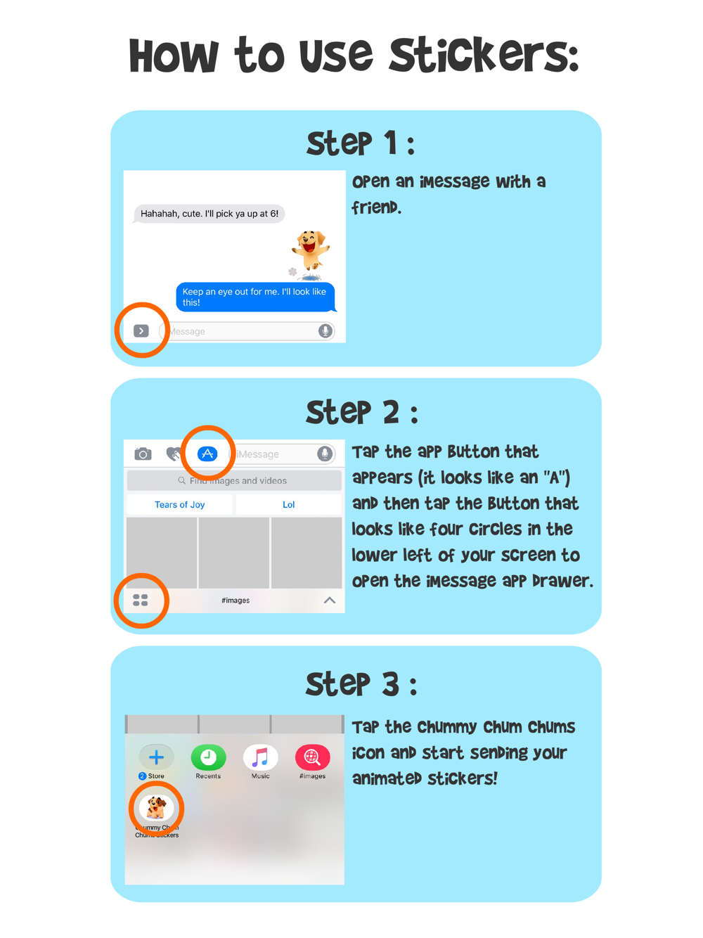 Step 3: Tap the Chummy Chum Chums icon and start sending your animated stickers!