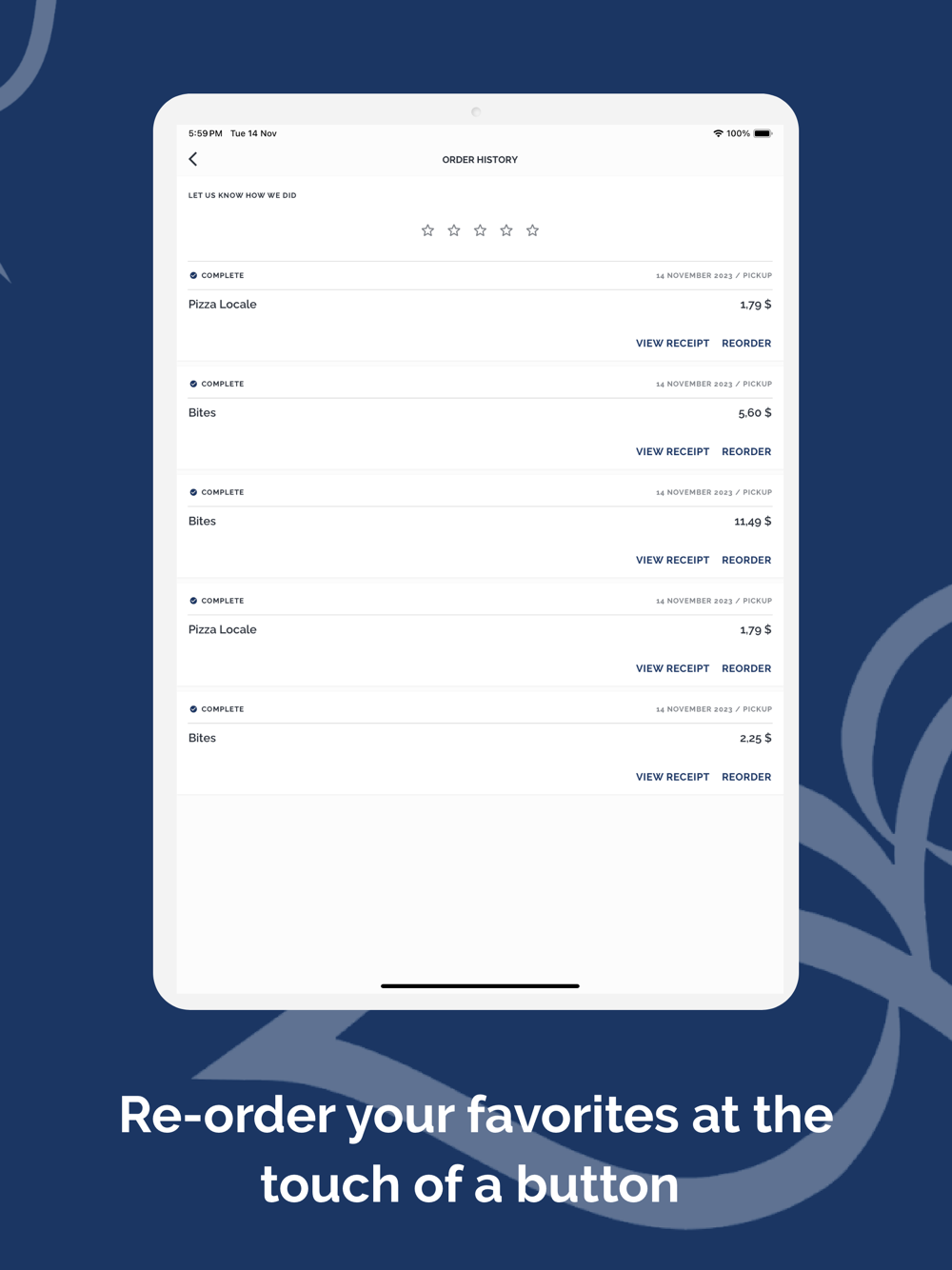 • Pre-order and pay from your smartphone, then skip the line and pick-up (available at participating locations only)