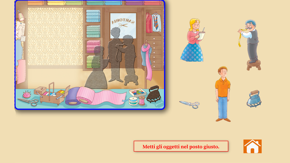 L’applicazione è ricca di giochi, disegni da colorare, puzzle e quiz adatti ai bambini; strumenti pensati per far memorizzare i vari oggetti che si usano in una sartoria.