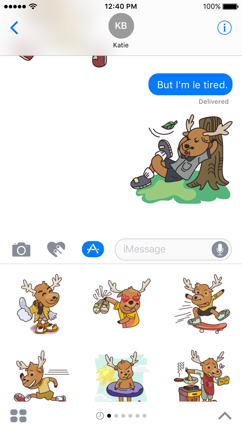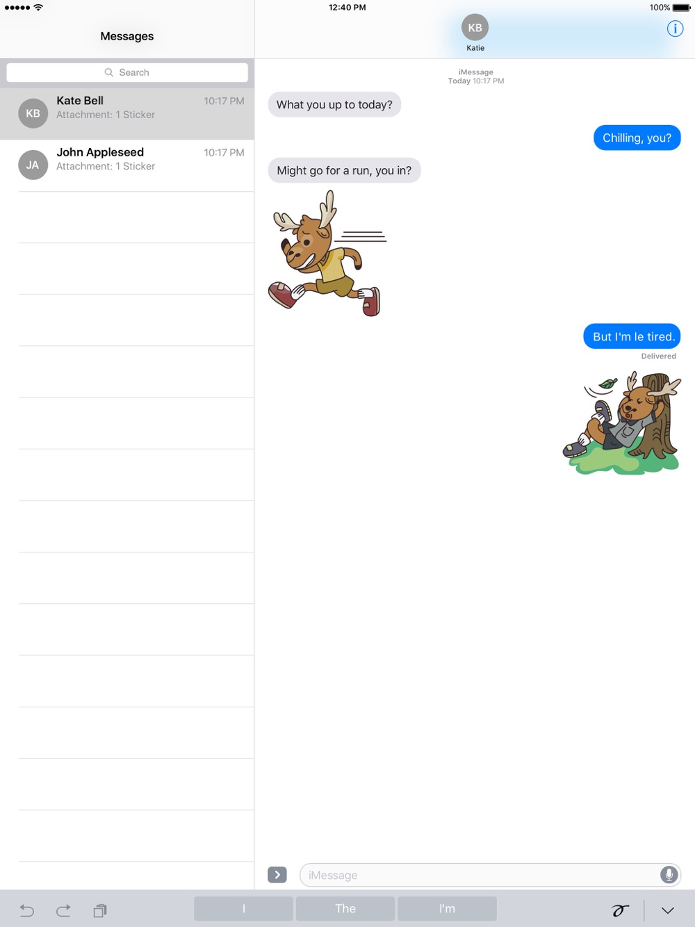 4. Tap a sticker once to send. Hold a sticker and drag onto a message to overlap stickers.