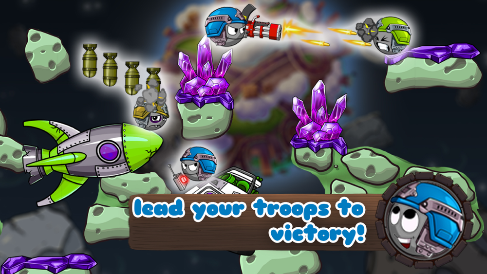 We give you six battlefields, a bunch of weapons and a crack team of Army Warlings to execute your combat maneuvers. Locations include combat in space, at sea, in the air and much more!