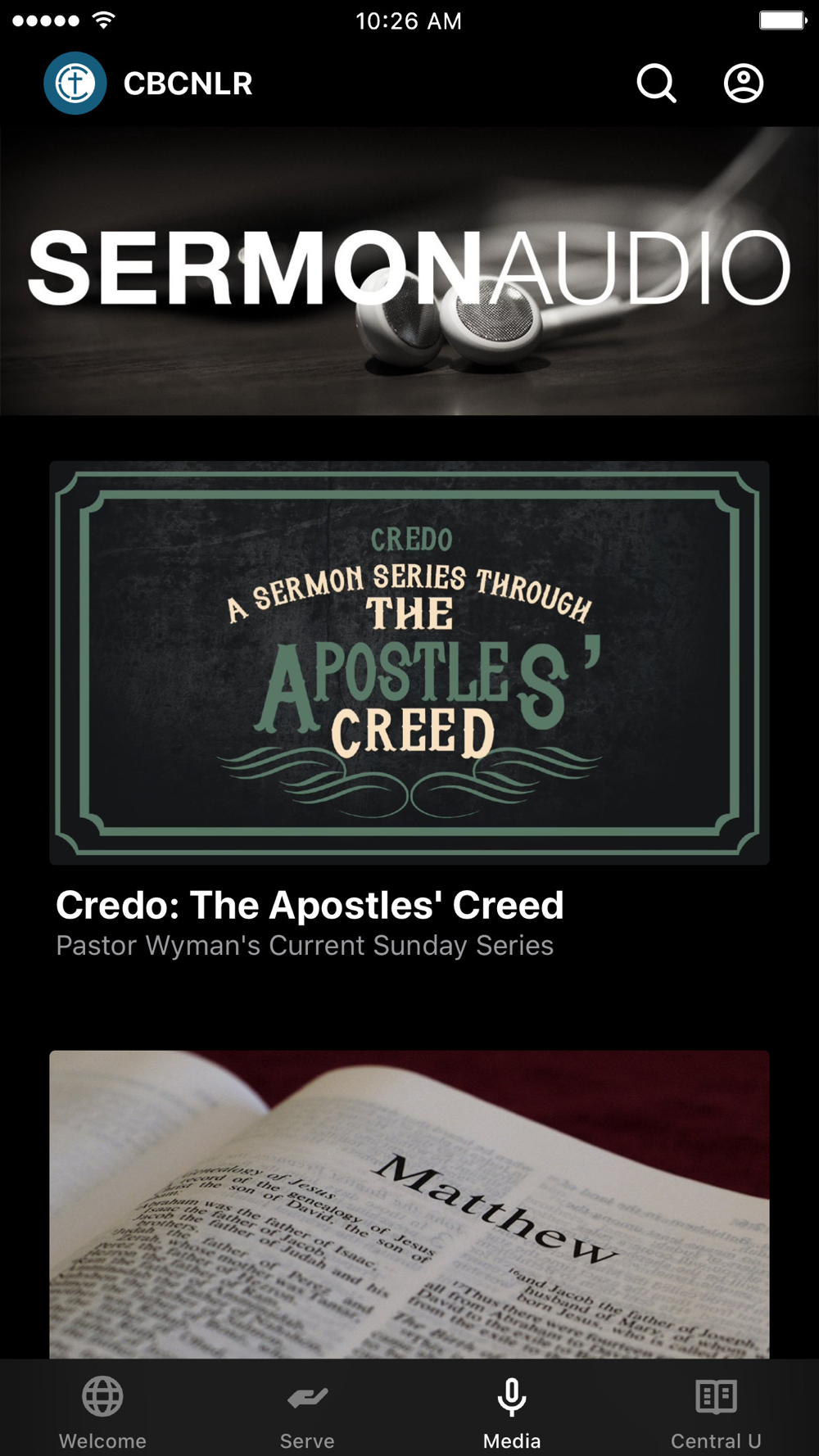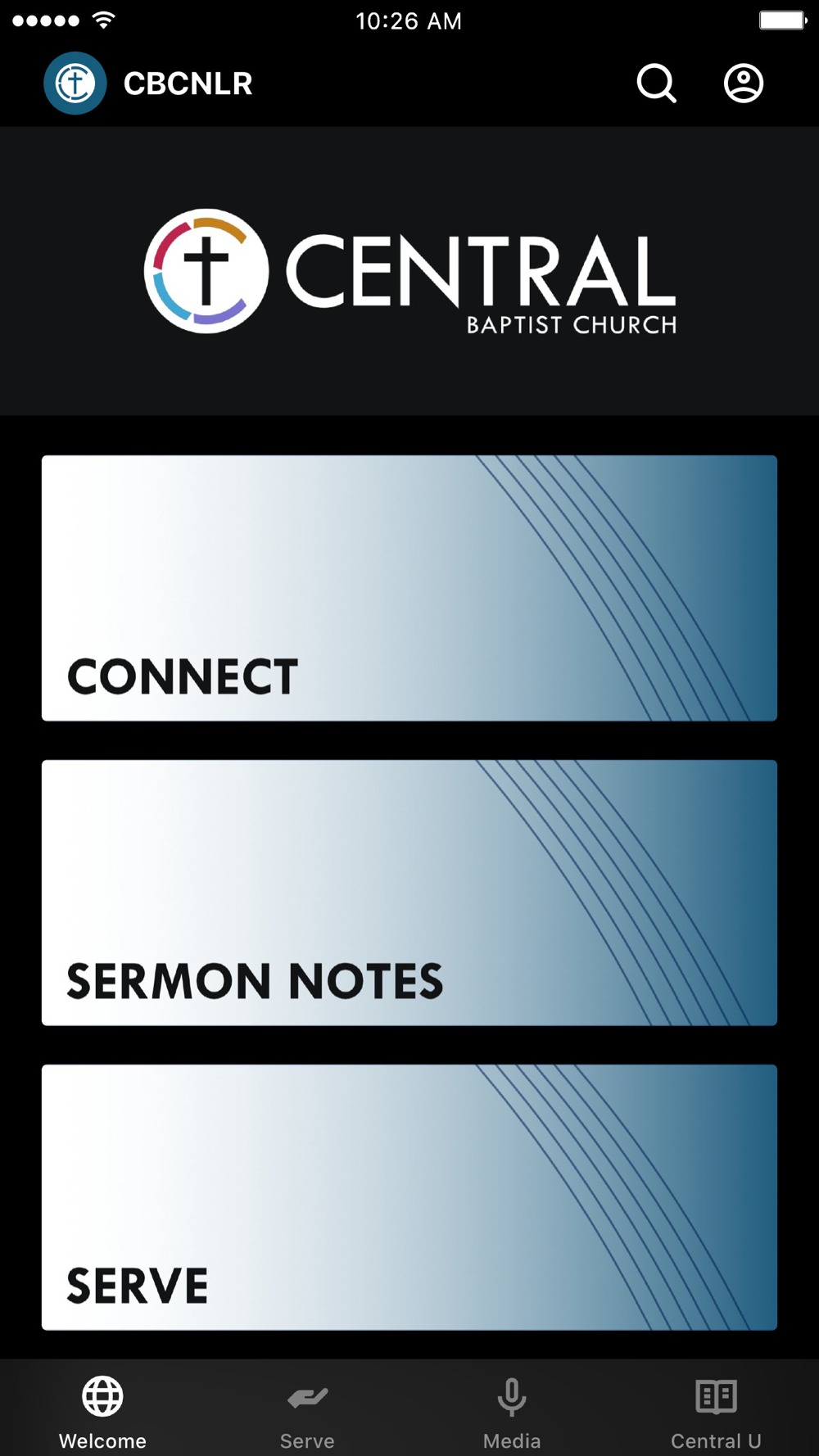 The Central Baptist Church NLR, AR App was created with the Subsplash App Platform.