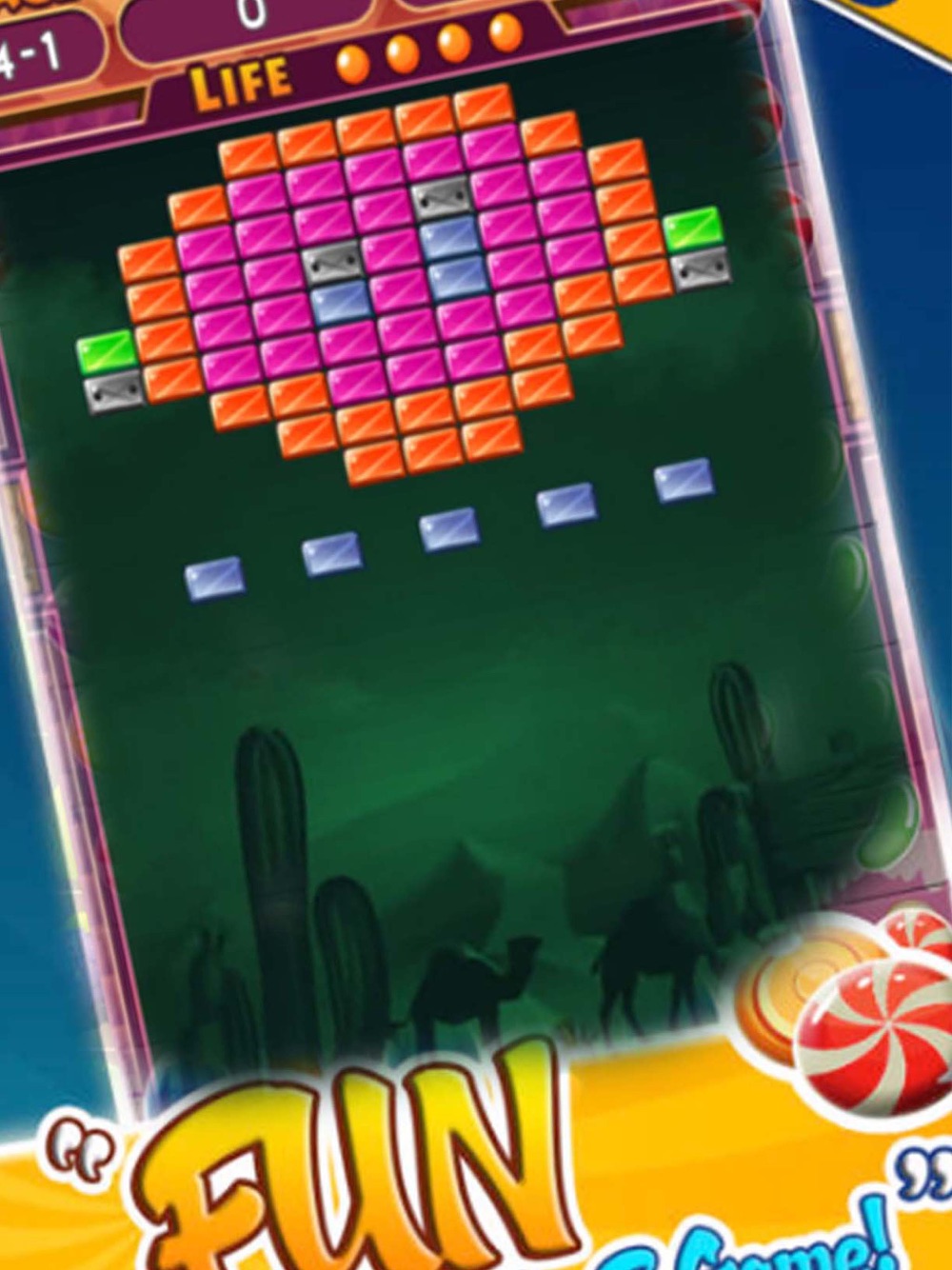 Destroy all the bricks to pass phase and enjoy the spectacular visual effects in this clone of the famous game Bricks Break were so popular in the 70's and 80's and that you can carry in your pocket everywhere.