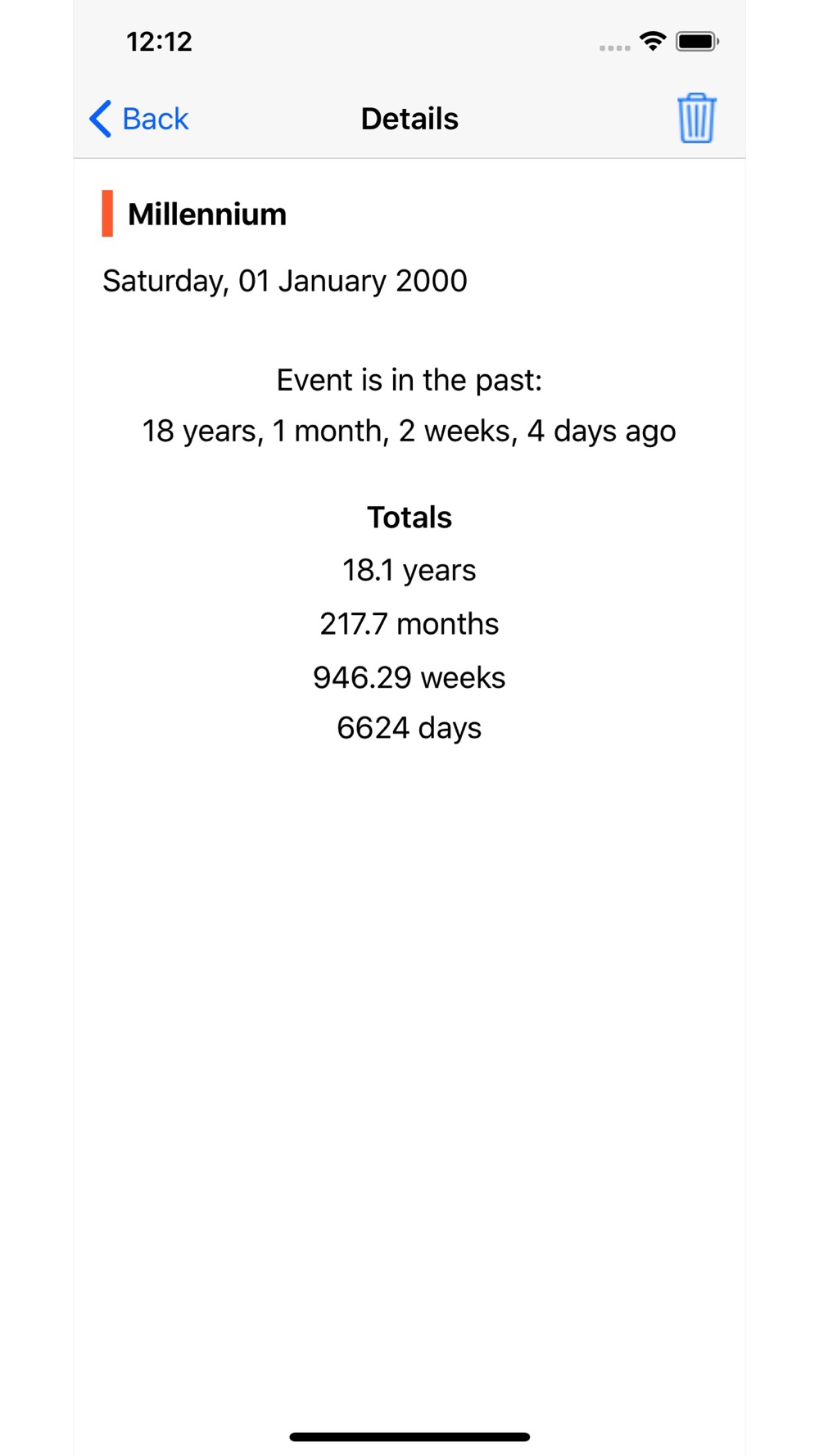 Lets you keep a list of events and shows you when they are due, or in the case of past events when they occurred.