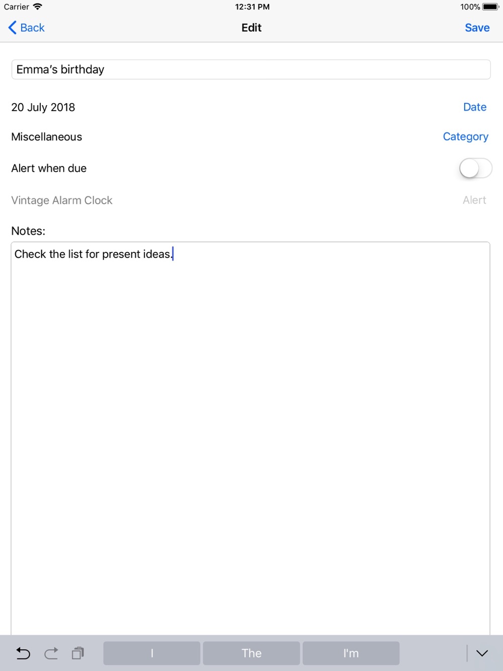You can create category names to file your events under, and store additional notes in each event record.