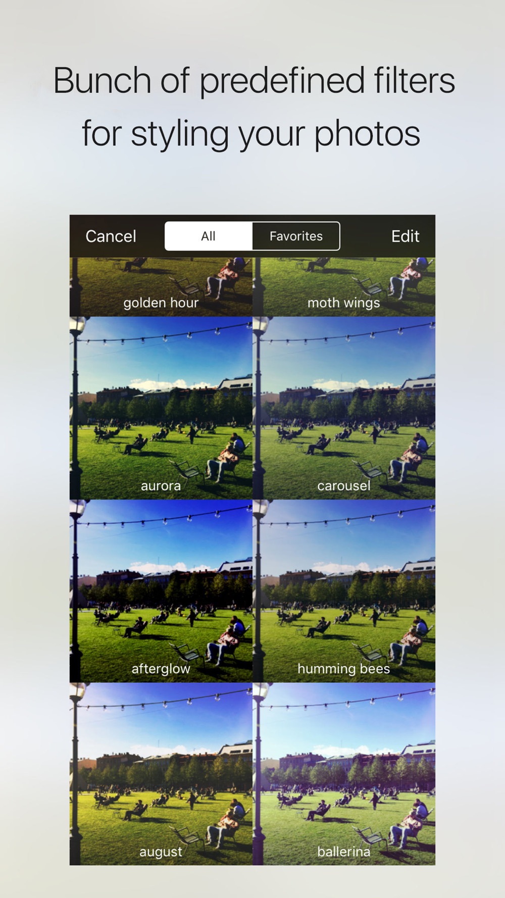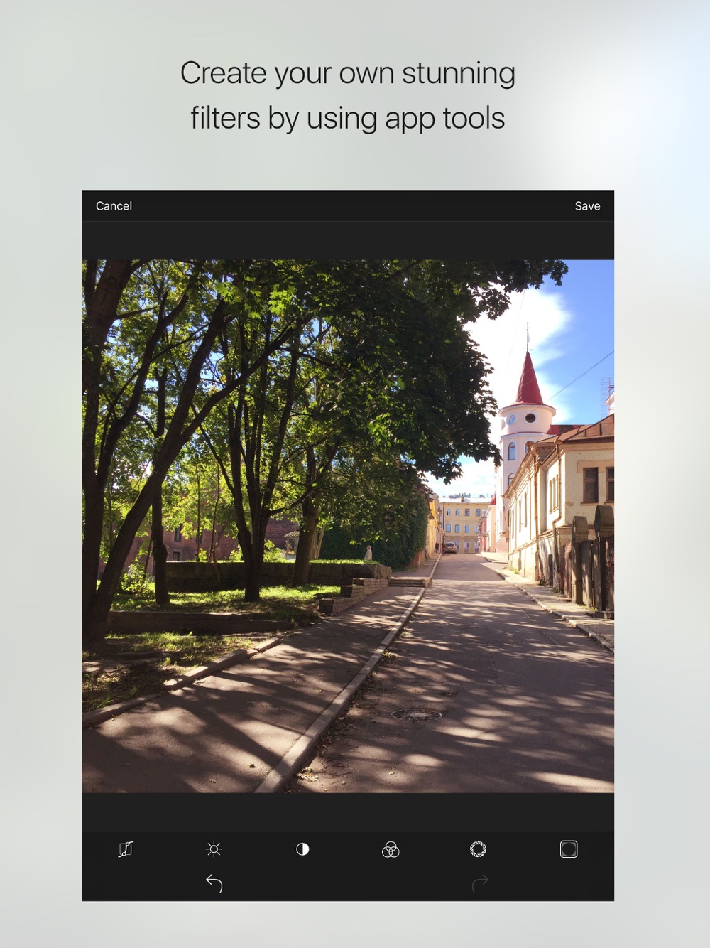 Aren't you satisfied with filters provided by the other apps? Create your own with tools you'll find in Charm!