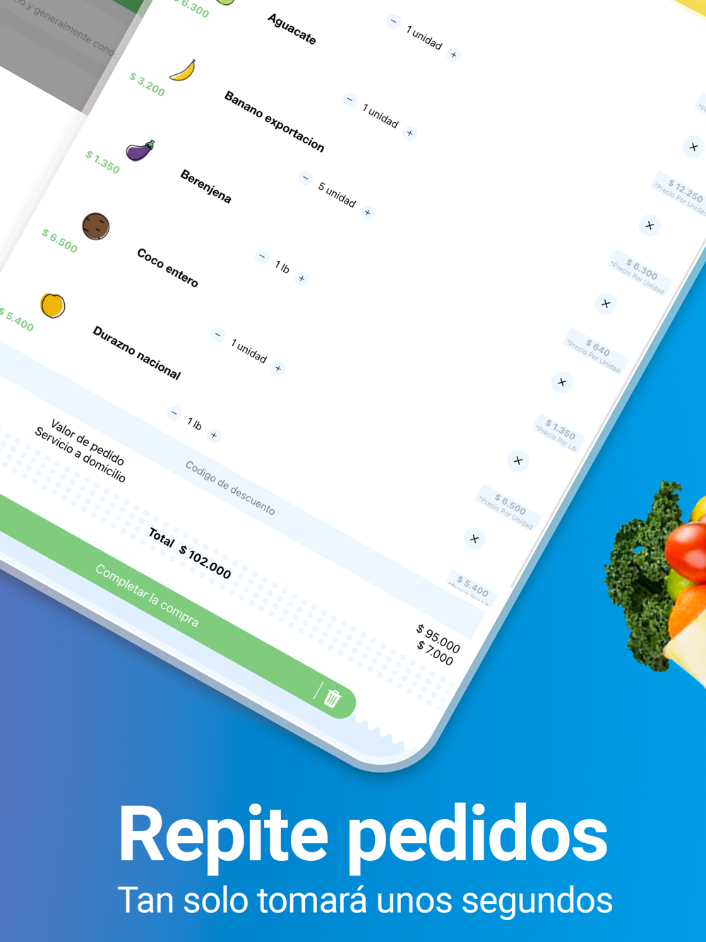 Guineo te hace muy fácil y rápido comprar frutas y verduras frescas en la plaza de mercado, sin salir de tu casa y te las entrega a domicilio.