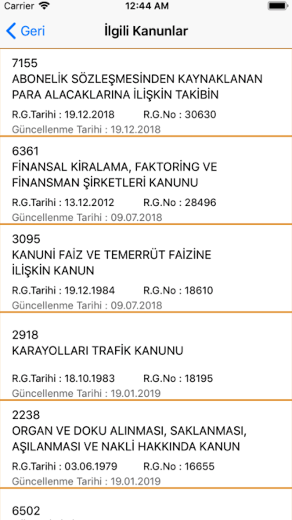 İçtihatlar menüsünde uygulama içindeki tüm kanunlar ile ilgili içtihatlar listelenmektedir. bu listenin üst kısmındaki arama kutucuğu ile içtihatlarda kelime arayabilirsiniz.