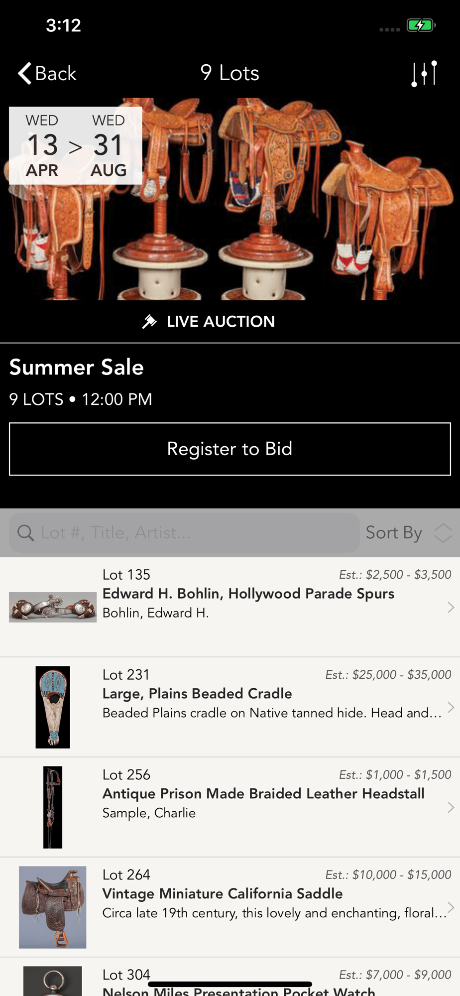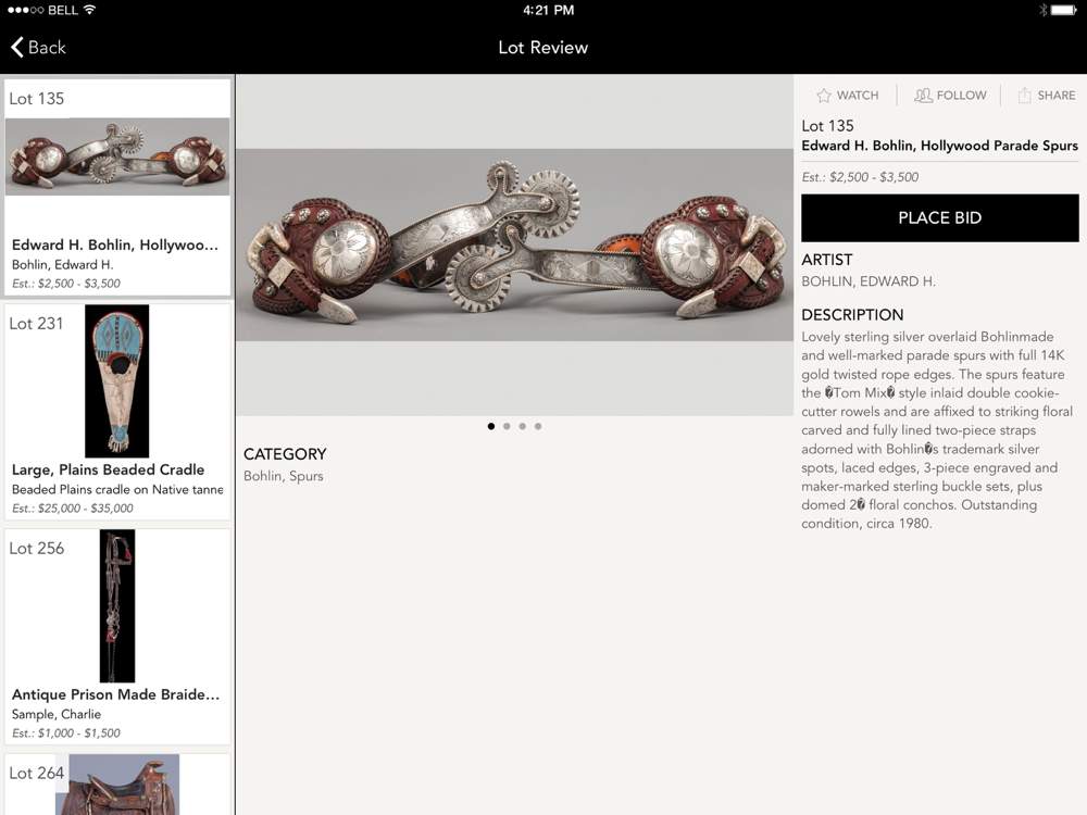 Mobile auction bidding designed with you in mind! Our user-friendly and feature-rich app includes push notifications, the ability to “watch” lots, absentee and live bidding, past auction archives, and comprehensive search, browse & save functions – all from the convenience of your favorite device.