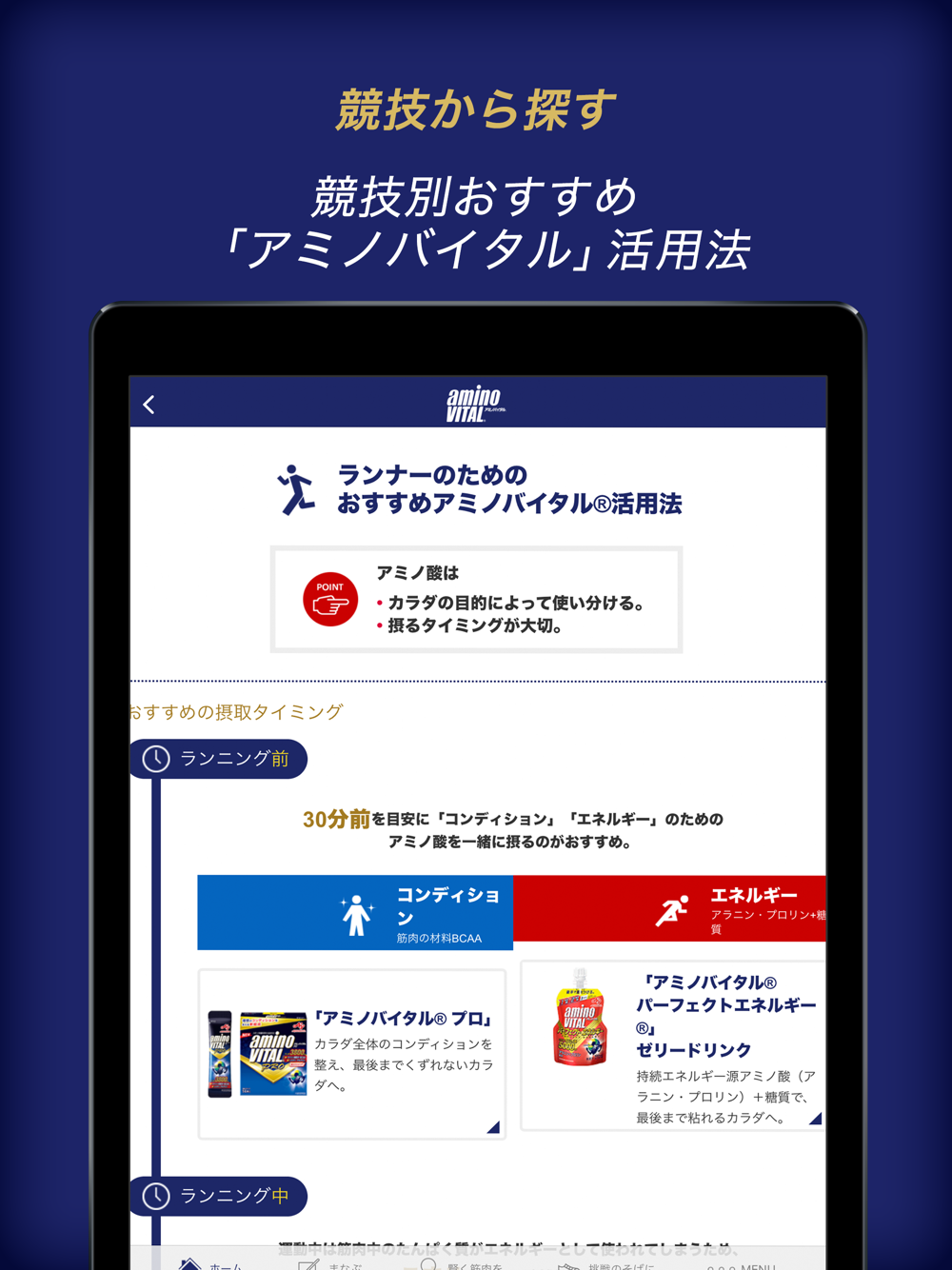 「アミノバイタル」の公式アプリ。