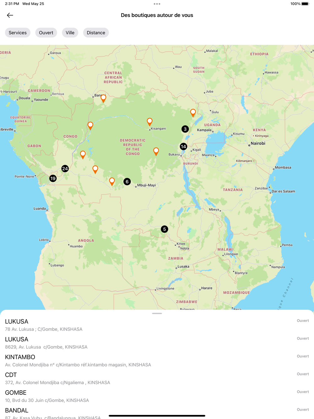 - Coûts : la navigation dans l'application est gratuite sur le réseau Orange Congo (hors itinérance localisation des agences et boutiques Orange sur une carte, et accès au site web).