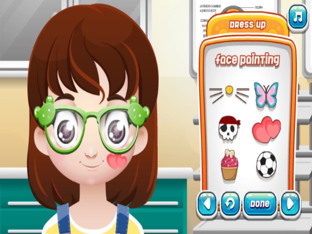 这是一个有三个小故事组成的游戏。游戏中,小红近视了,需要给她配一幅眼镜。小明贴足球眼眶受伤了,快来帮助他处理伤口吧!小美带隐形眼镜不正确,感染了细菌,医生需要给他做清理工作。
