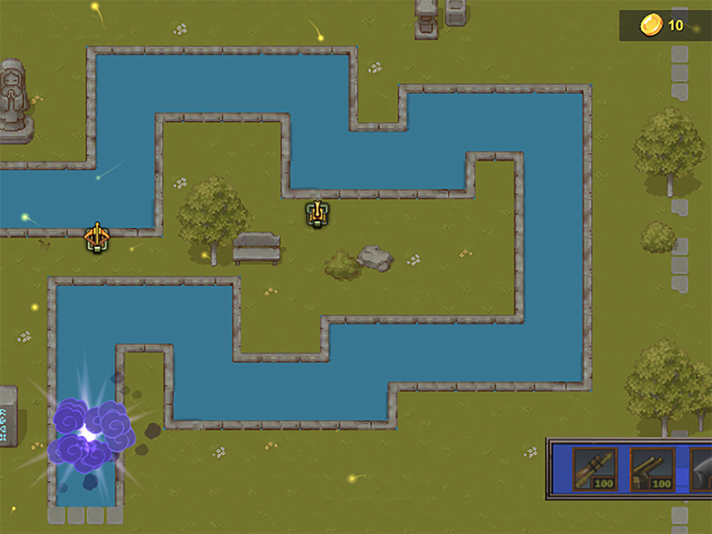 Tower Defence is a fun TD game, you need build defense units to block both air and river enemies to go through your zone, Destorying your enemy gives you more golds, you can build more defense unit, you can also upgrade your defense unit to add damage. Let'g go! good luck.