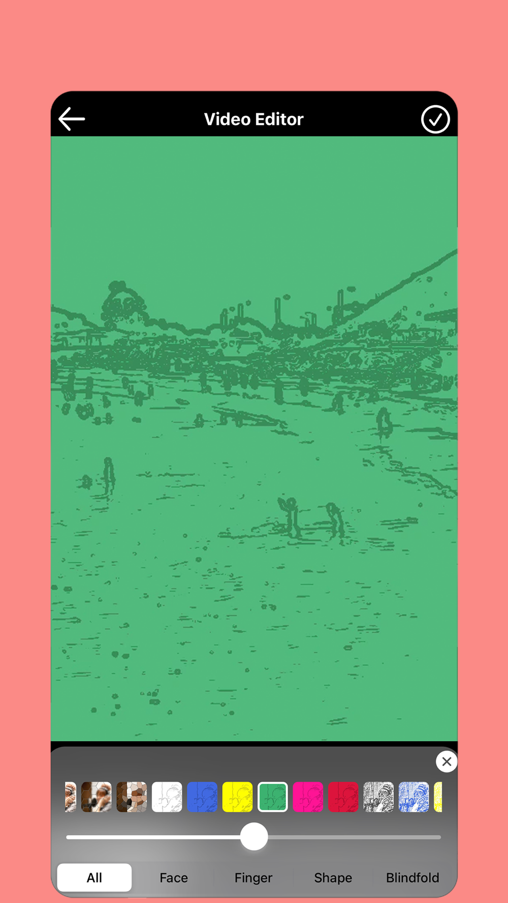 You can blur the entire video, blur a part by moving the mosaic while playing the video, blur the part traced with your finger, automatically blur only the face, or decide the shape to blur.