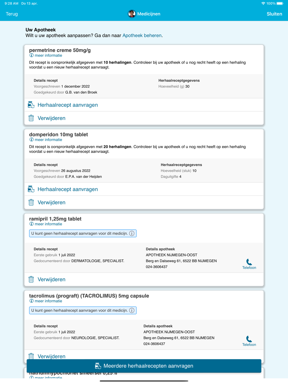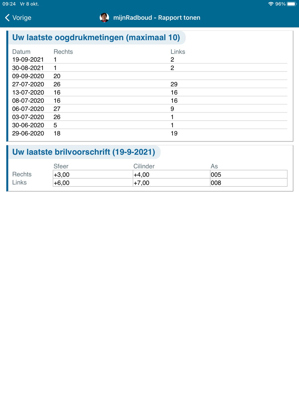 Met mijnRadboud kunt u in een beveiligde digitale omgeving uw persoonlijke medisch dossier raadplegen. De mijnRadboud app geeft toegang tot de belangrijkste functionaliteiten van mijnRadboud: raadplegen onderzoeksresultaten, overzicht medicijnen, overzicht allergieën, vragenlijsten, berichten bekijken en versturen van en aan uw behandelteam, beheren en voorbereiden van afspraken. Ook kunt u medische gegevens invoeren zoals hartslag en bloeddruk, als uw behandelaar daar om vraagt. De mijnRadboud-app kunt u ook koppelen aan diverse andere gezondheids-apps zoals Apple Healthkit.