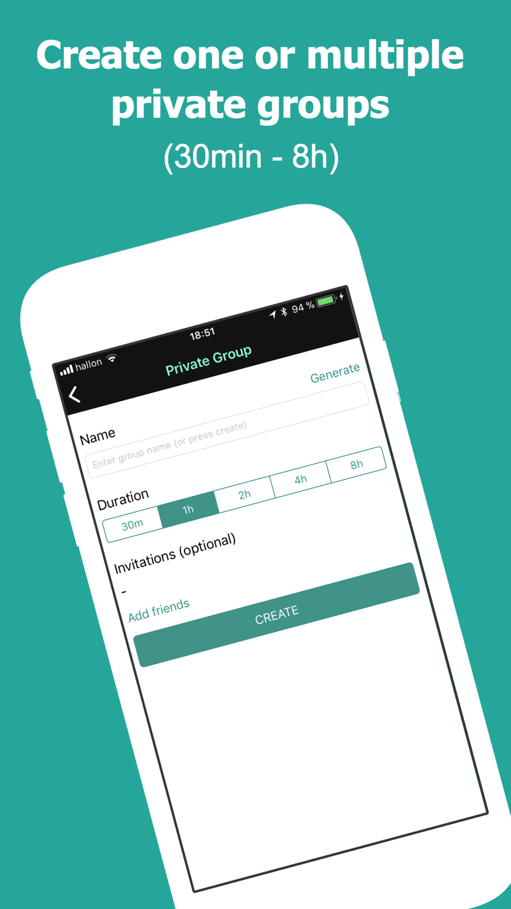 Your location data is deleted when the group expires (max 8h) or when you manually leave the group.