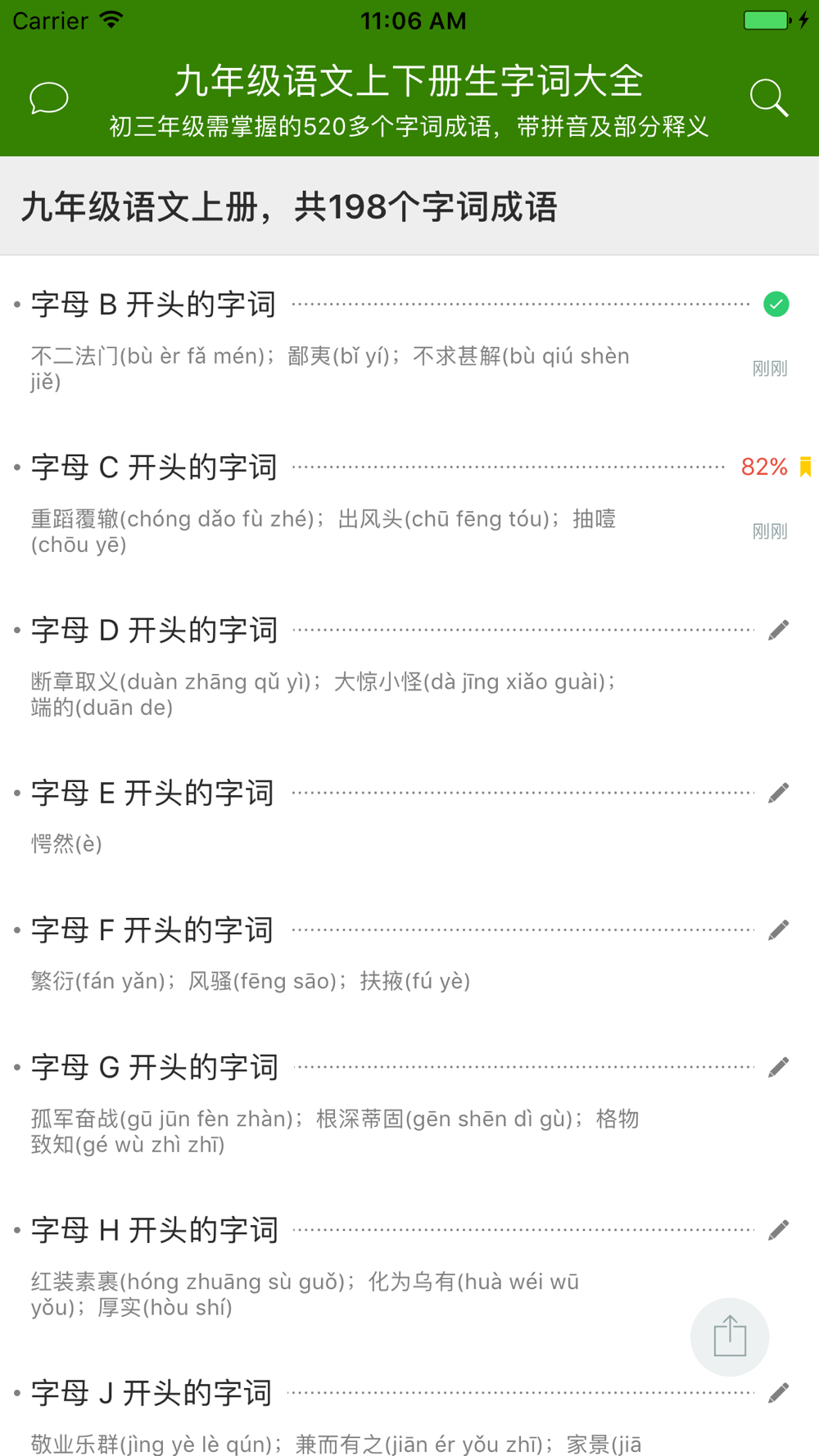 1. 初三语文教材同步更新生字词; 2. 适配新机型; 3. 优化软件性能及修复用户反馈的一些问题。