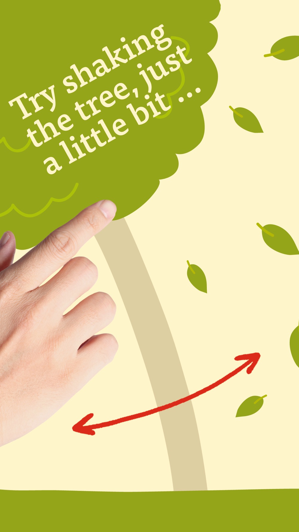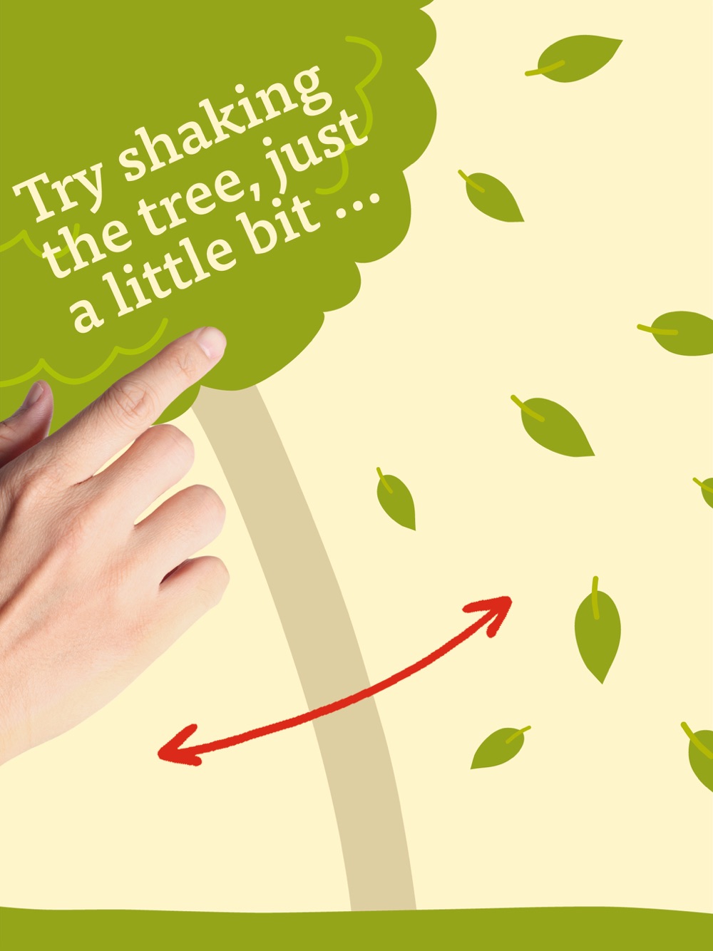 This application starts on the pages of a book. Would you like to know more? Then start turning the pages of SHAKE THE TREE and watch the unusual story of a very crowded tree unfold!