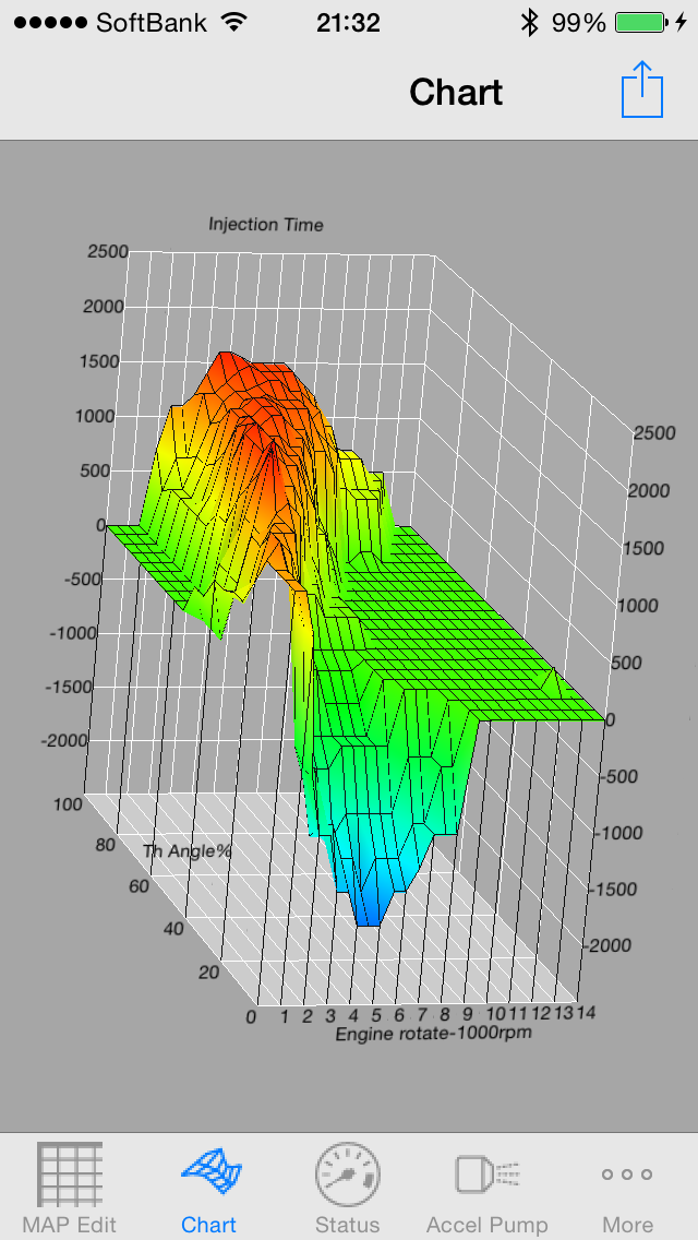 - The maximum 2500 micro seconds the engine rotation and throttle position for each fuel injection increase / decrease can edit and write-read.
