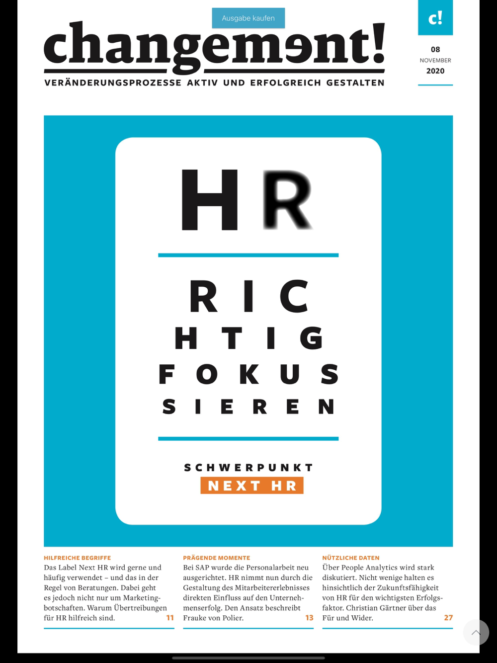 changement liefert Fach- und Führungskräften praxisnahe Informationen zum wirksamen Management von Veränderungsprozessen. Dabei stehen authentische Best-Practices aus Unternehmen, persönliche Change-Erfahrungen von Führungskräften sowie Methodenwissen im Vordergrund.
