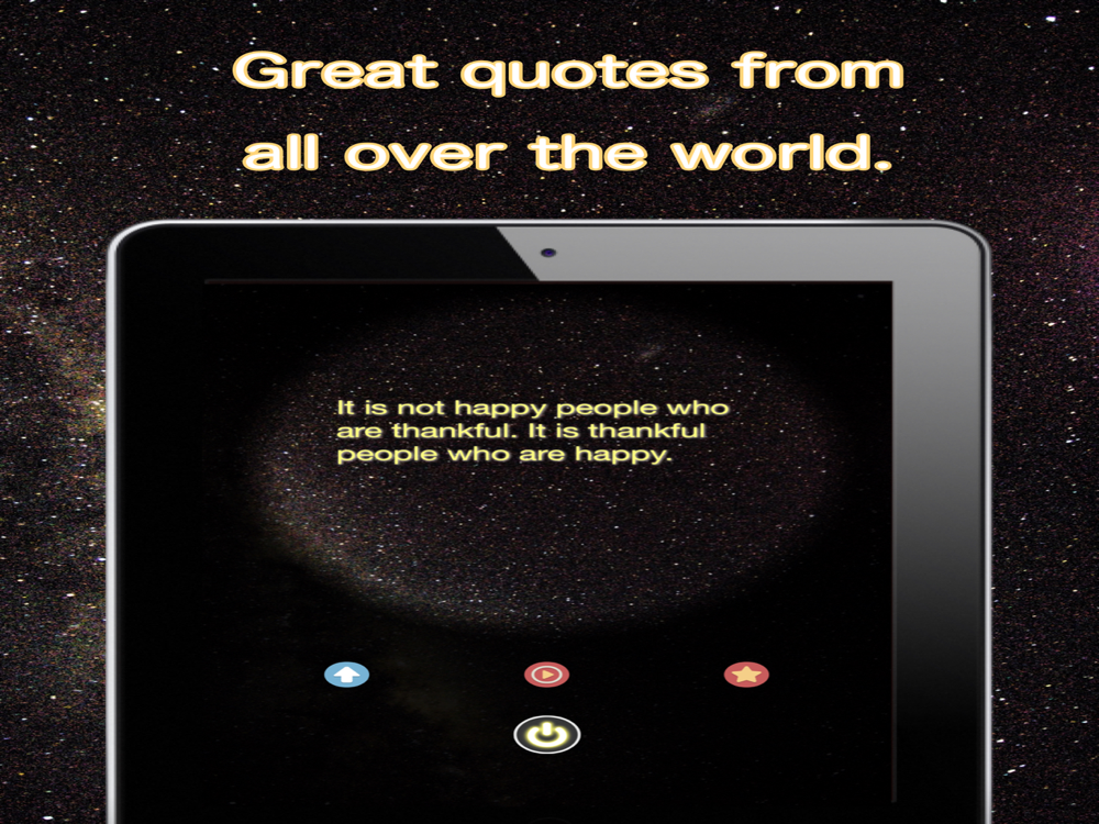 How about reading inspirational quotes while listening to calm, natural background music? You can choose from three types of sounds from the nature from the Settings page. You could use this to relax before going to bed.