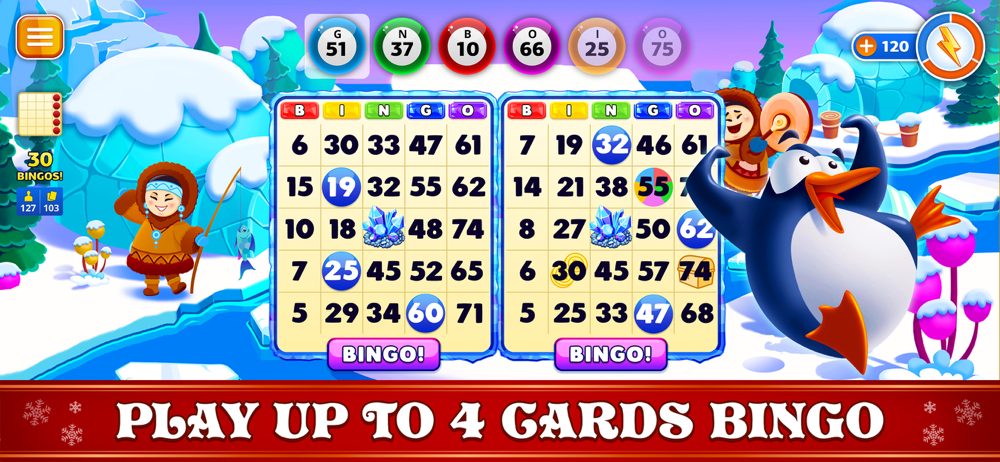 Enjoy unique sets of features, with lots of interesting levels and enjoyment. Play with animated Christmas bingo cards and special rooms! Chat with different users, play against them and simply enjoy this great stress free game!