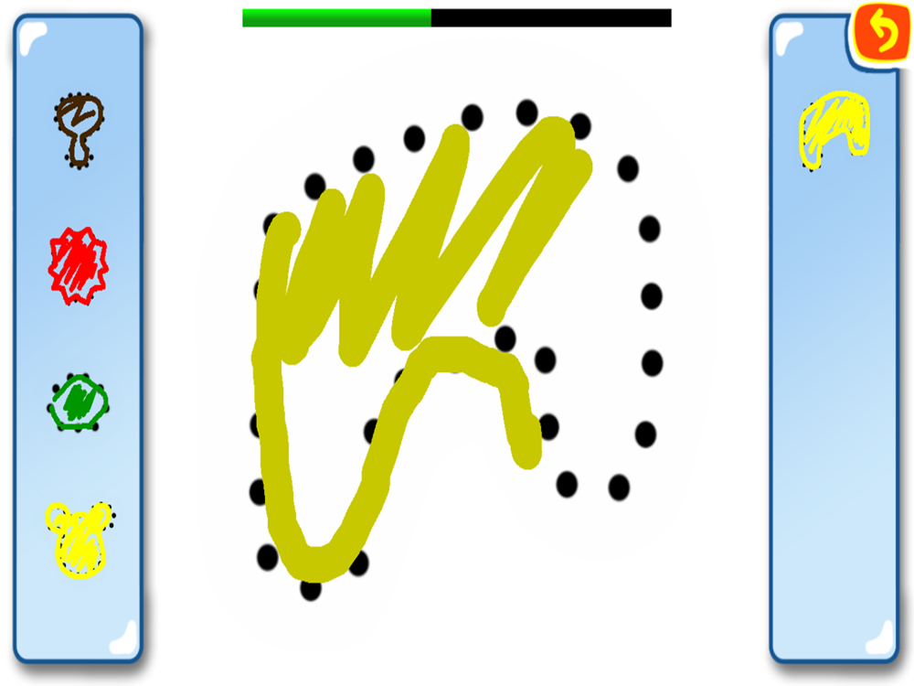The gameplay is very simple: draw part of an unknown figure, pointing and painting on the dotted line. And then the figure is assembled and the result is a very funny character who of course comes to life.