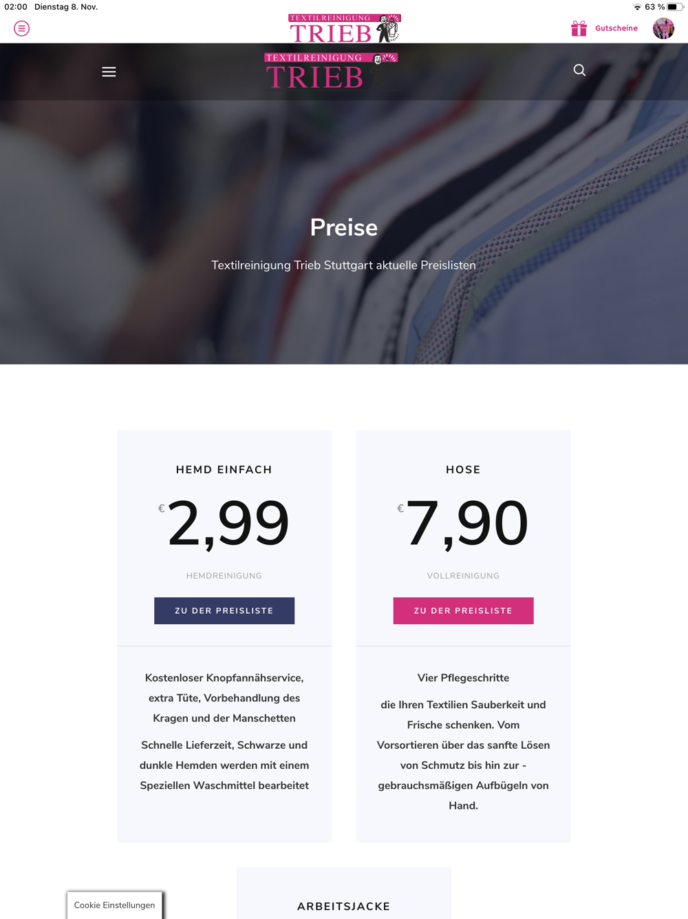 Angebote der Textilreinigung Trieb aus Stuttgart