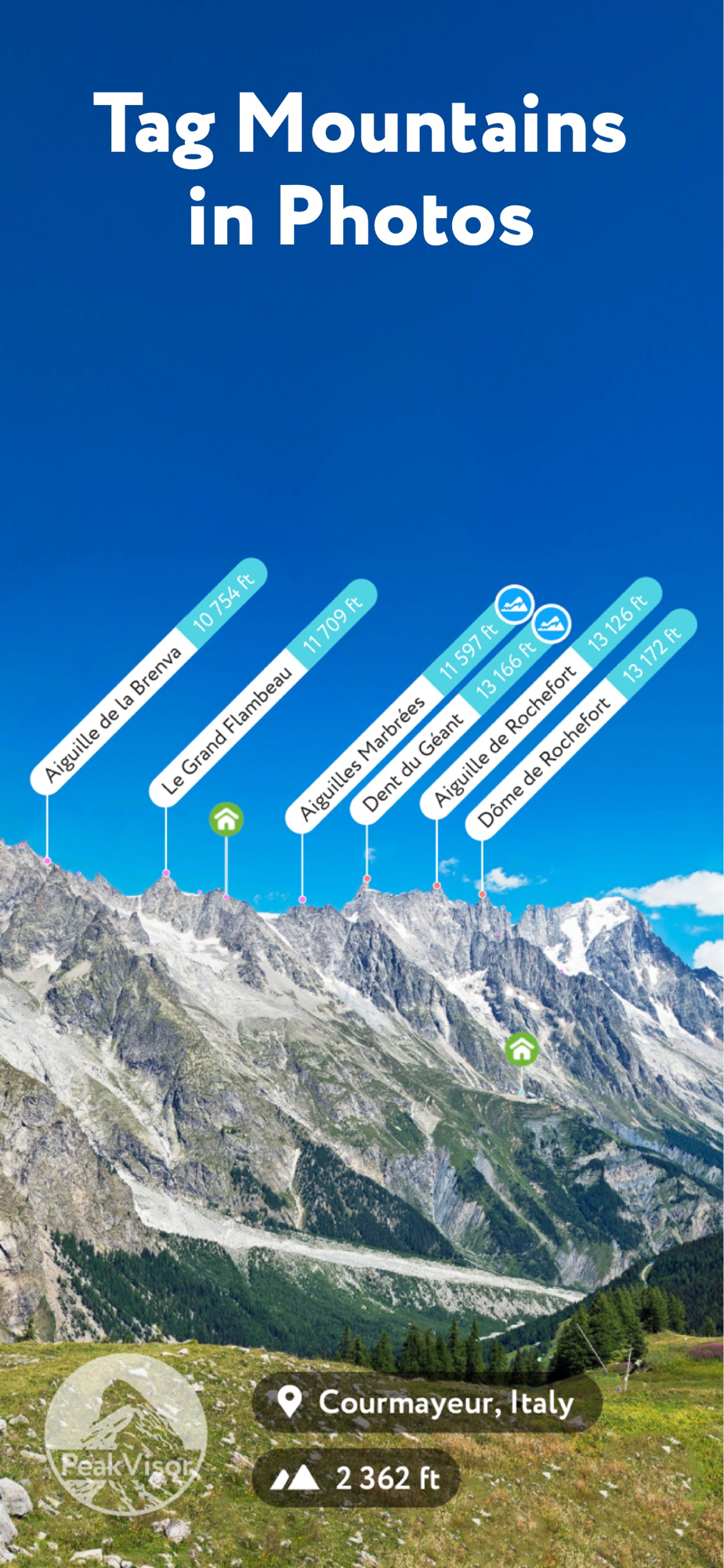 Identify more than a million mountains, hills, buttes, spires, and more from all over the world, with a detailed profile for each of them! Our app shows you altitude, topographic prominence, mountain range, national parks or reserves, as well as photos and additional Wikipedia articles.