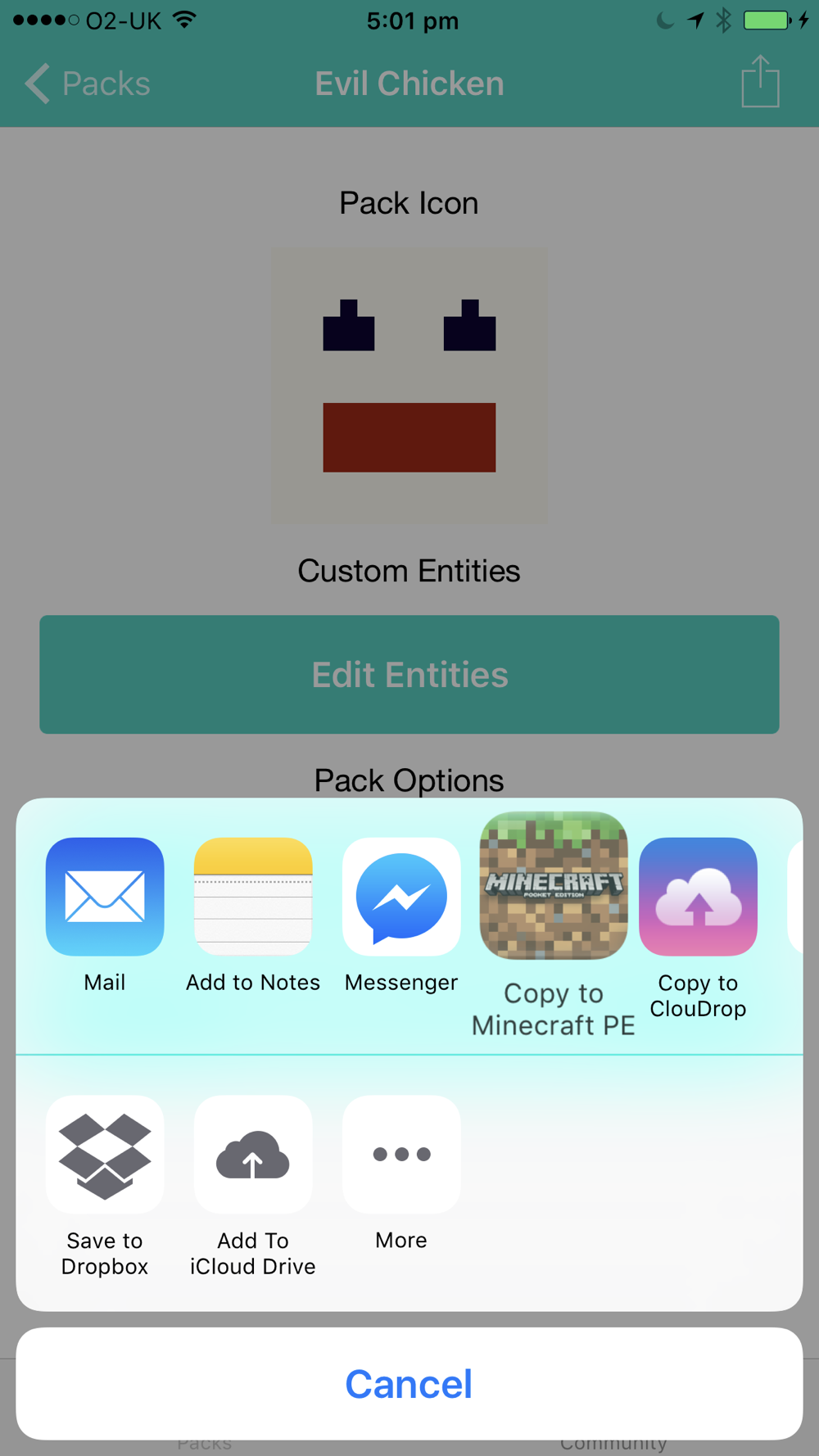 †† Importing to Minecraft: Pocket Edition requires the game to be installed. It's available on the App Store however, it is NOT required to run this app. You can still create your own Add-ons and share with the community without the game. You may also export the pack and e-mail it to yourself to play on another Add-ons supported platform.