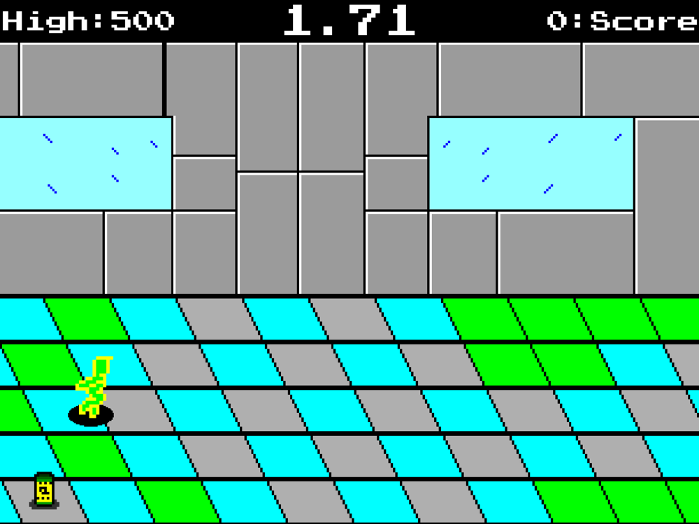Electro Cross is a runner style game loosely based off newer runners like Temple Run and older runners like Metro Cross (メトロクロス). The goal is to make it to the end without the timer ending. Move your finger around the screen to move Electro and tap to make him jump. Run into the cans to get certain bonuses (like time or points). Jump over the slowdown squares and holes. Step on the switches to make the laser walls disappear.