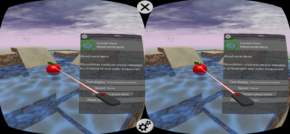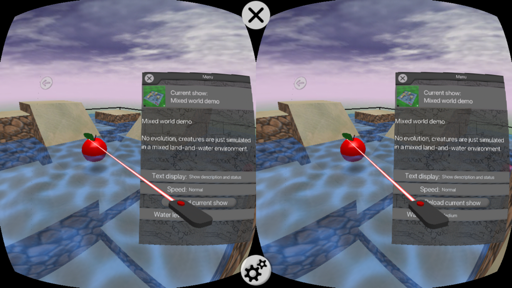 The performance of each creature is evaluated in terms of speed on land, speed in water, and height of its center of mass. These criteria can be set as fitness. Since you have mutation and crossover available to change genotypes randomly, you can run an evolutionary process and see how fitness in the population increases.