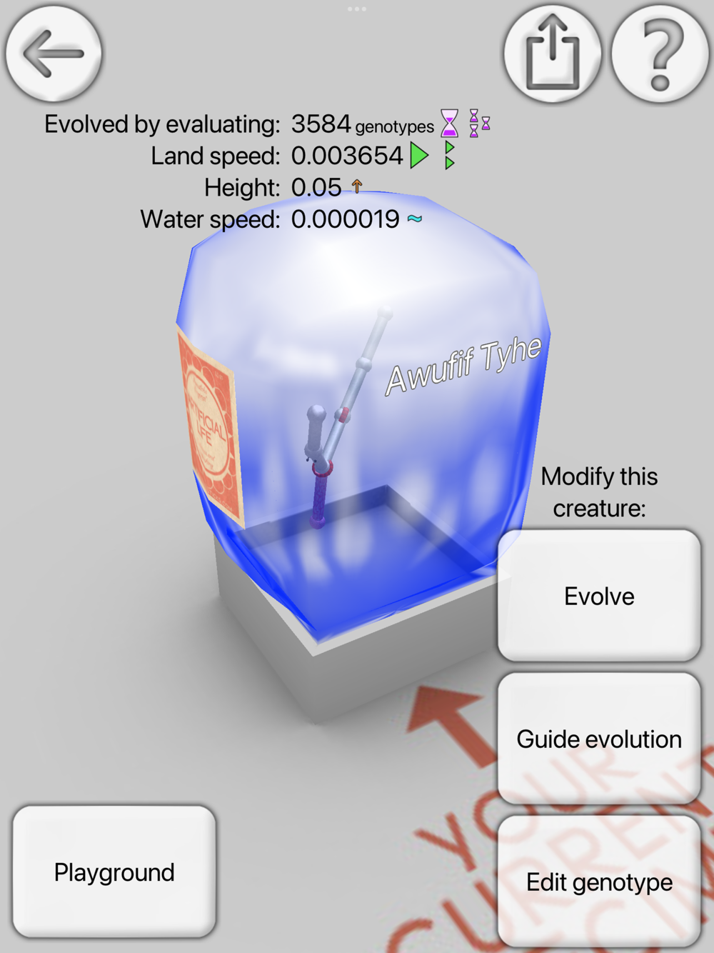 You can also guide evolution according to your preferences by making creatures you like reproduce and generate their random variations.