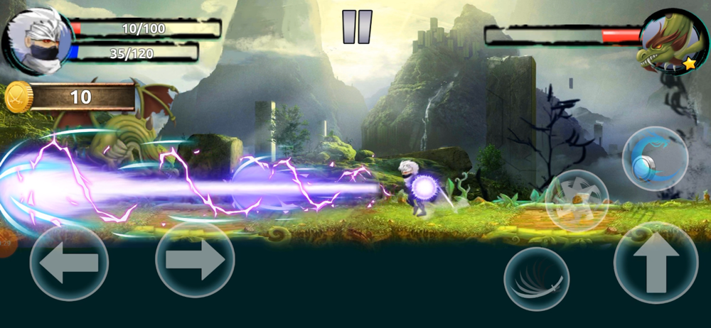 The game play is very simple, you will be asked for fighting with monster and just try to win in versus fighting game. Other than that, the skills, how to move, how to jump, how to use sword, raisen shuriken, dragon recall ... will be shown in the first stage you fight. Now you just to combine all of skills and your fighting to skills to fight.