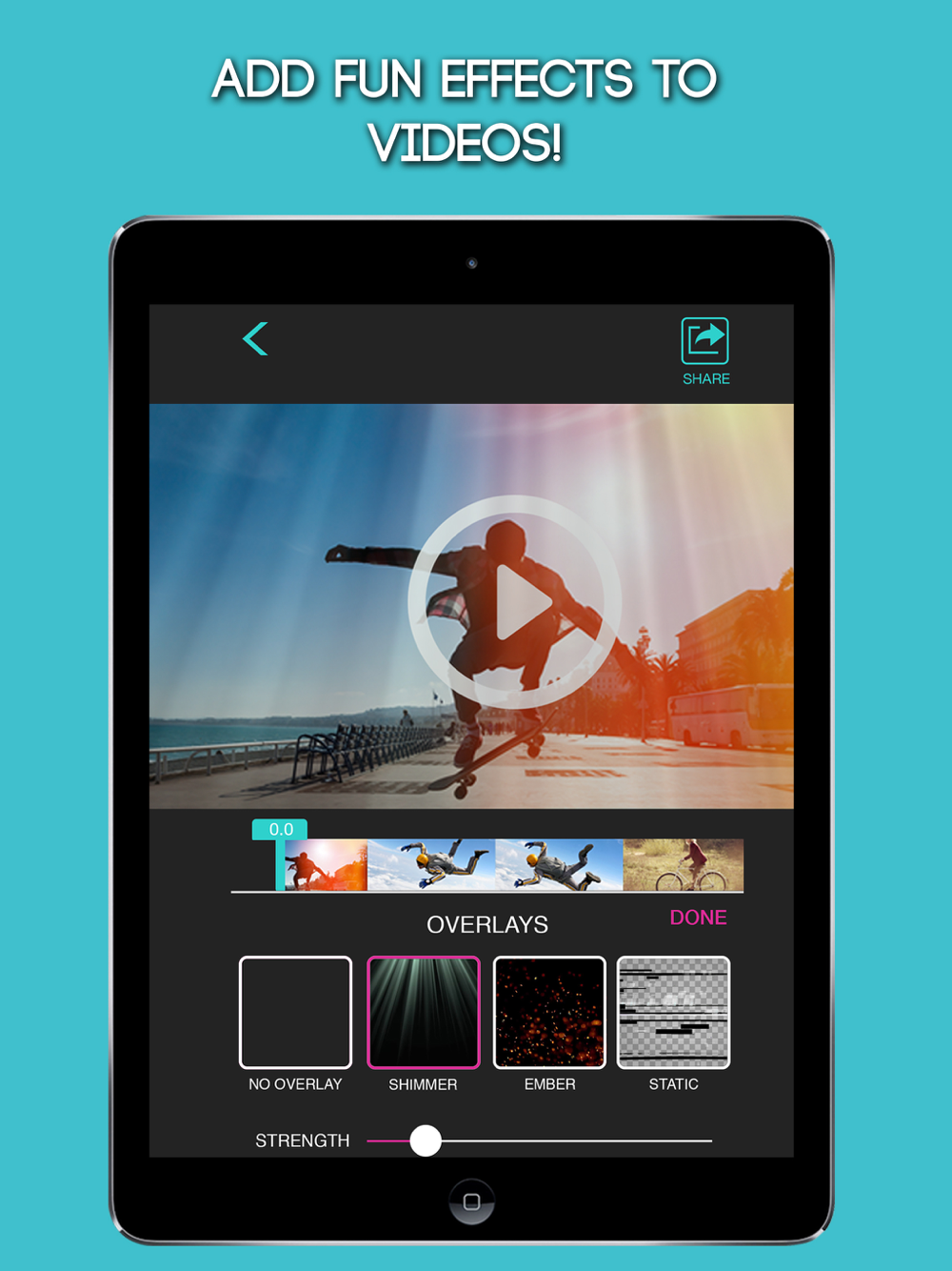 - Quickly share on Facebook, Youtube, Instagram, Vine and more with just a quick tap.