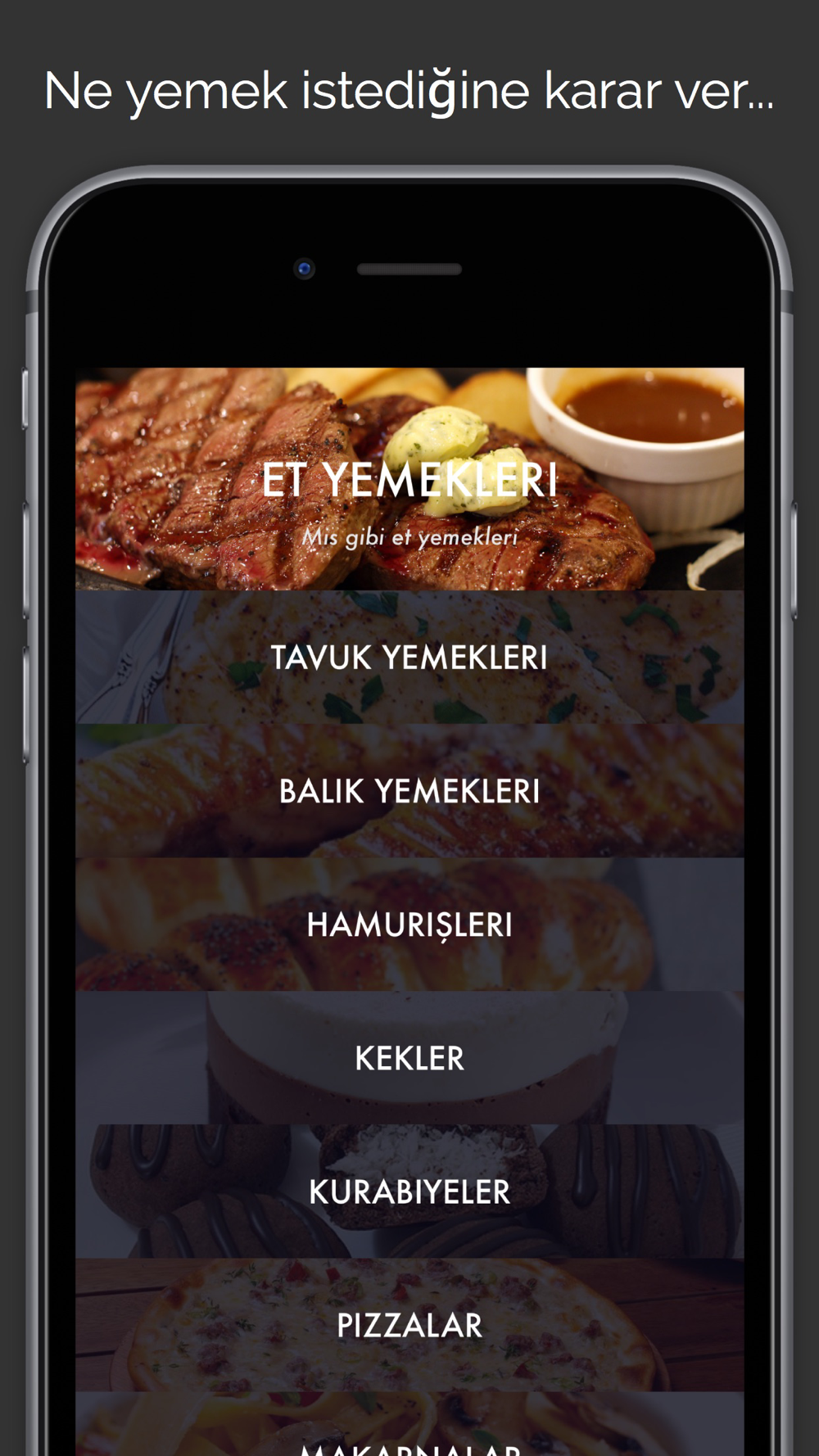 Aperitifler, Ana Yemekler, Börekler, Kekler, Kurabiyeler, Makarnalar, Mezeler, Pastalar, Poğaçalar, Salatalar, Tatlılar, Çorbalar ve daha fazlası seni bekliyor.