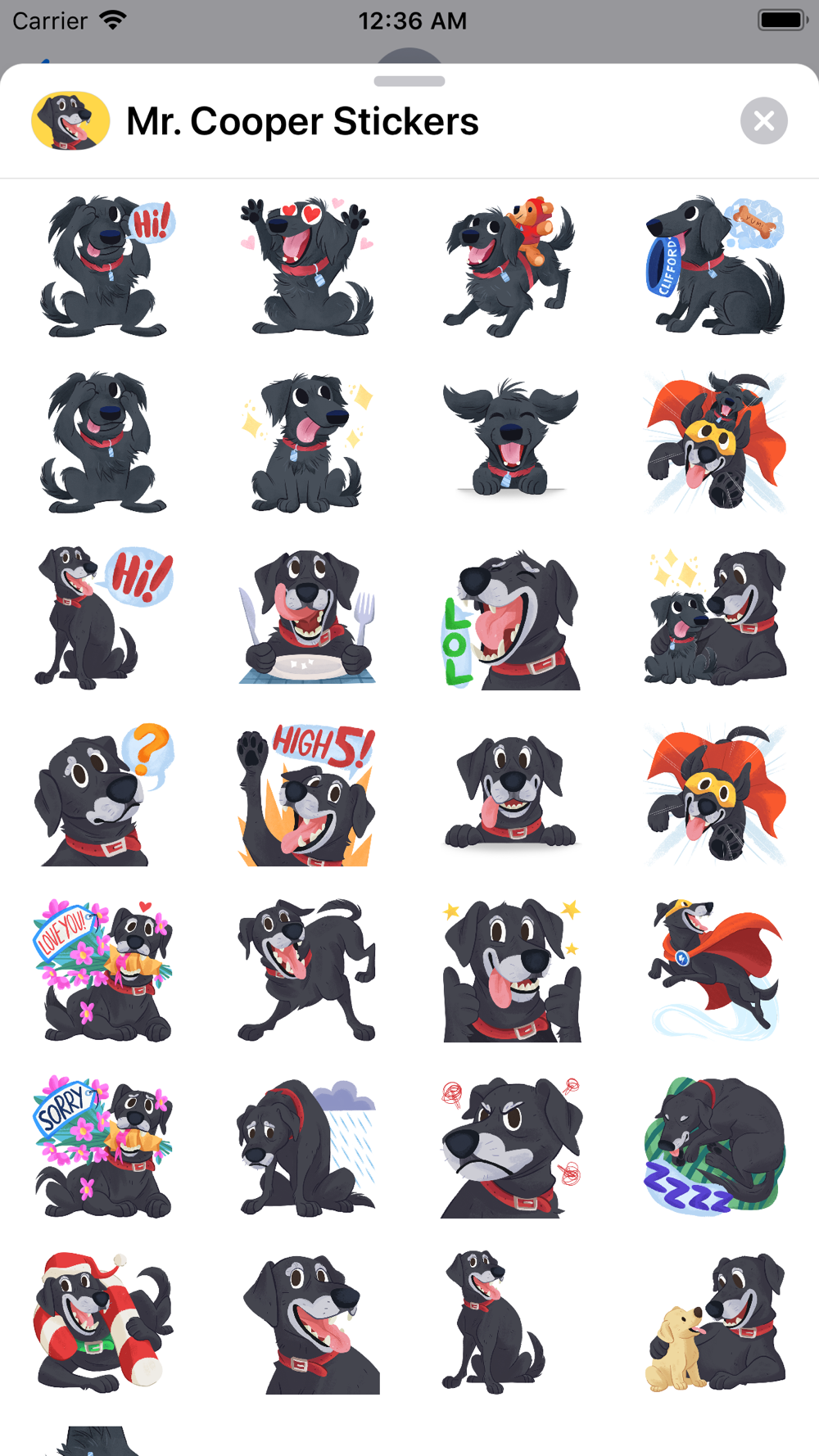 Meet Mr. Cooper, a handsome Black Labrador Retriever, originally a midwest rescue pup, college graduate, gentleman and avid adventurer ready to add fun, silliness, and provide heaps of cuteness to your iMessage chats.