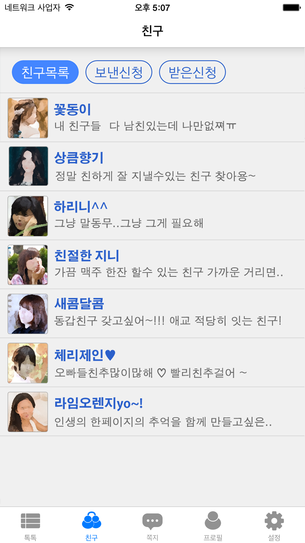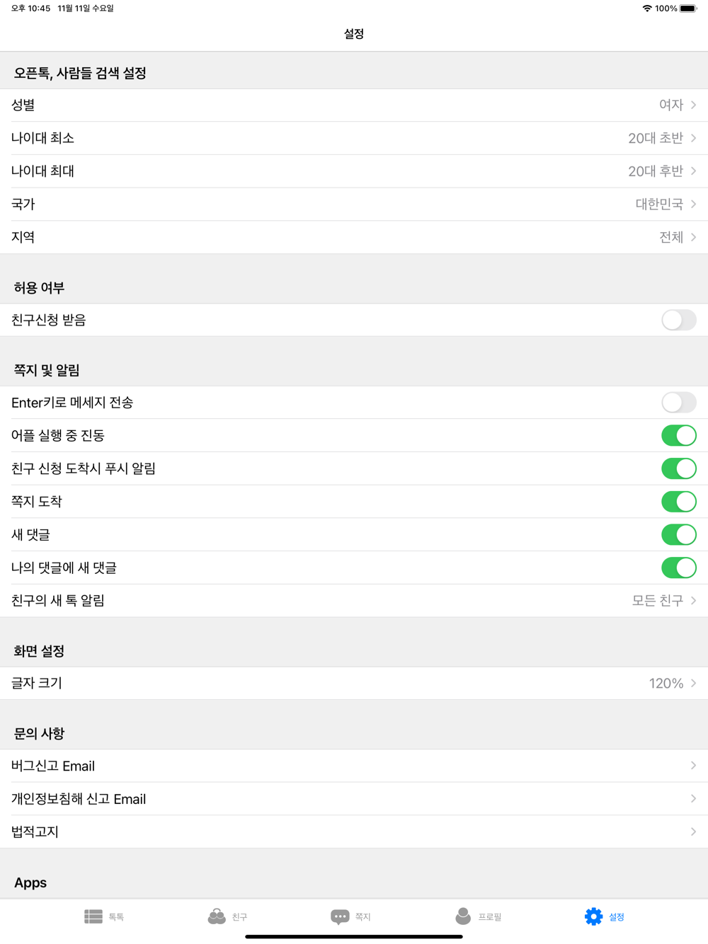 * 친구신청을 더이상 받고 싶지 않으면 설정에서 친구신청받기 해제할 수 있습니다.