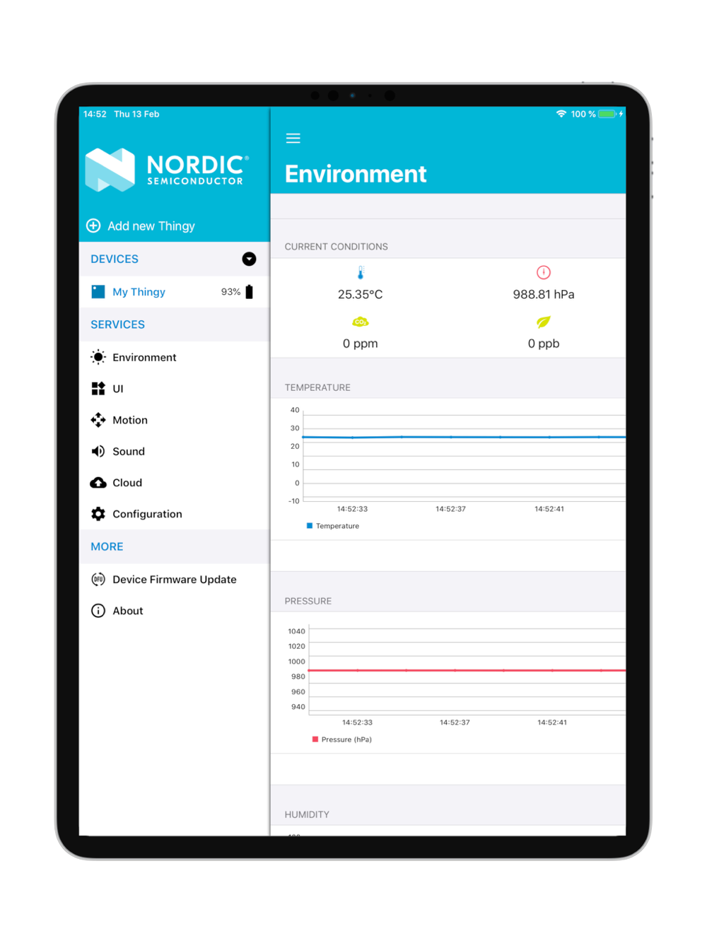 Capture, view, and interact with the sensor data acquired from your Thingy, with no programming skills required.