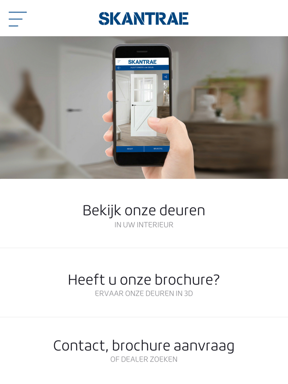 Met AR voeg je een extra laagje aan de werkelijkheid toe. Zo kan jij die ene deur van Skantrae eerst in een ruimte plaatsen, voordat jij hem koopt.