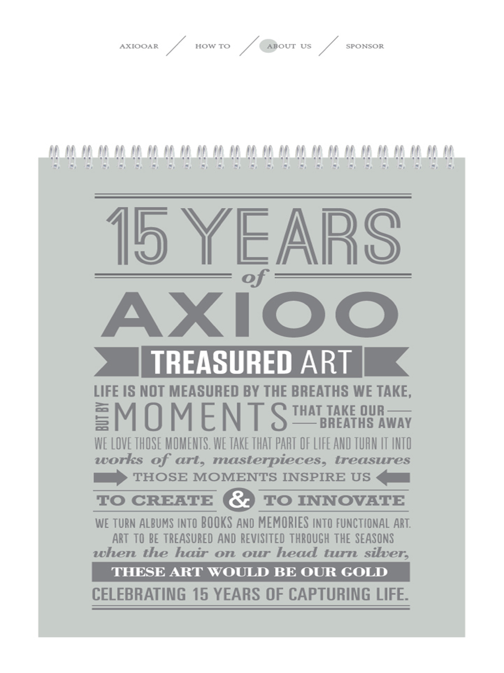 AXIOO AR was designed as a celebration for love and for life. This is a diary of AXIOO Photography and Cinematography that documents journeys through seasons - from girlhood to womanhood, from singles to spouses, from lovers to parents - and highlights the love shared in each moments through beauty portraits, engagement and wedding pictures, maternity and family portraits.