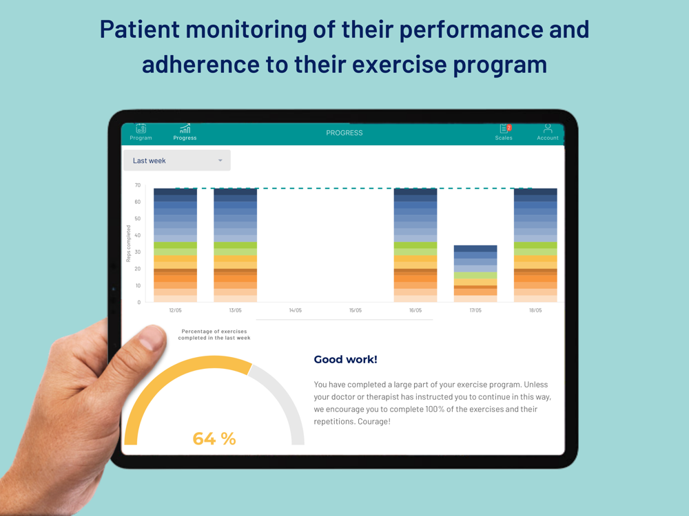 Finally, healthcare professionals can monitor their patient and know their progression, their adherence to treatment or their weekly scores on scales and clinical questionnaires, through a dashboard.
