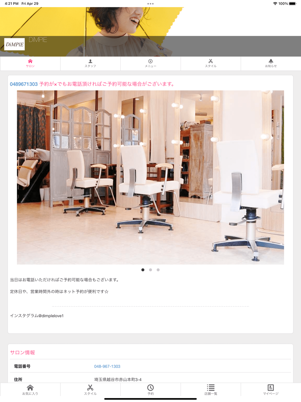 予約状況や店舗情報を手軽にチェック。