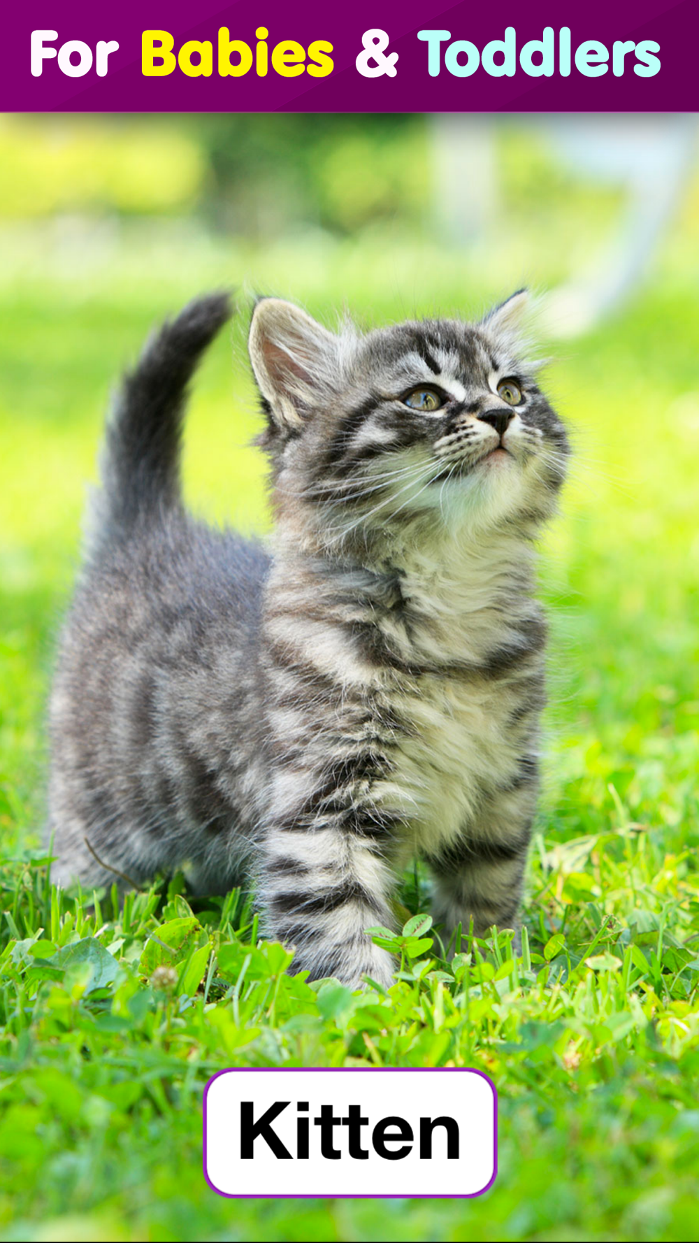 250+ toddler flashcards with high-quality pictures, photos, sounds, written words and professional audio from native speakers.