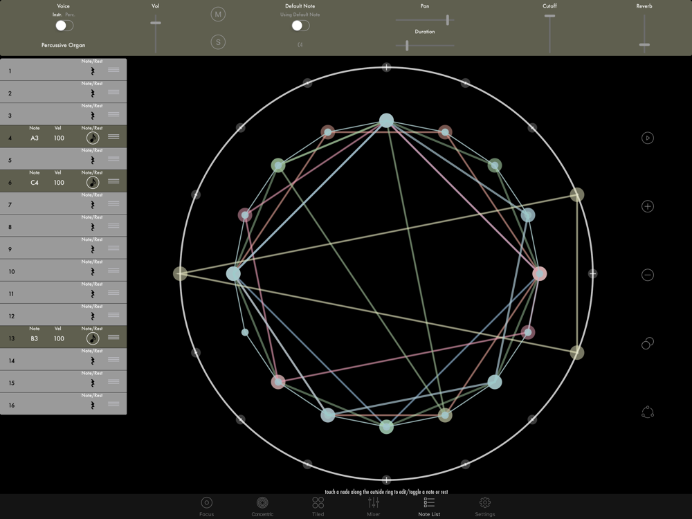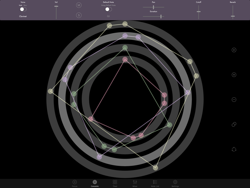 Concentric Rhythm was originally developed as a new way to improvise electronic music, but it is also a great tool experimenting with and developing musical material, or just for casually playing with music in a unique, hands-on, way.
