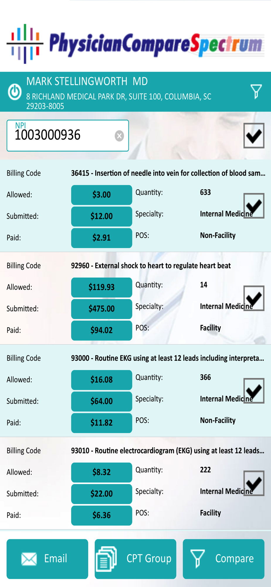 This APP is useful to view physician comparison charts for the $ value for respective Billing codes. Comparison is based on CMS data for 'Medicare Provider Utilization and Payment Data' i.e. for Physician and other suppliers for CY2020.