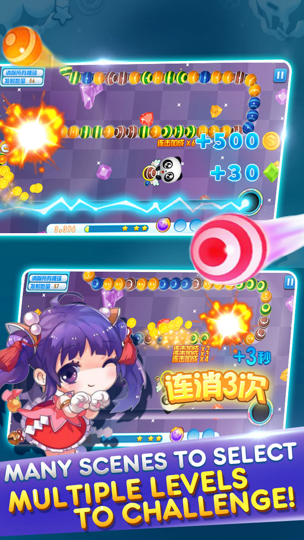 Survive four secret scenes to get the mysterious treasure! Complete all levels, and try to get three stars in each level!
